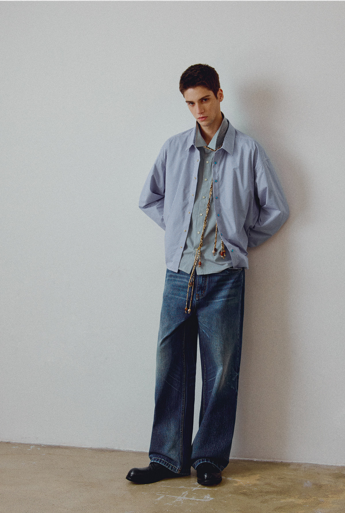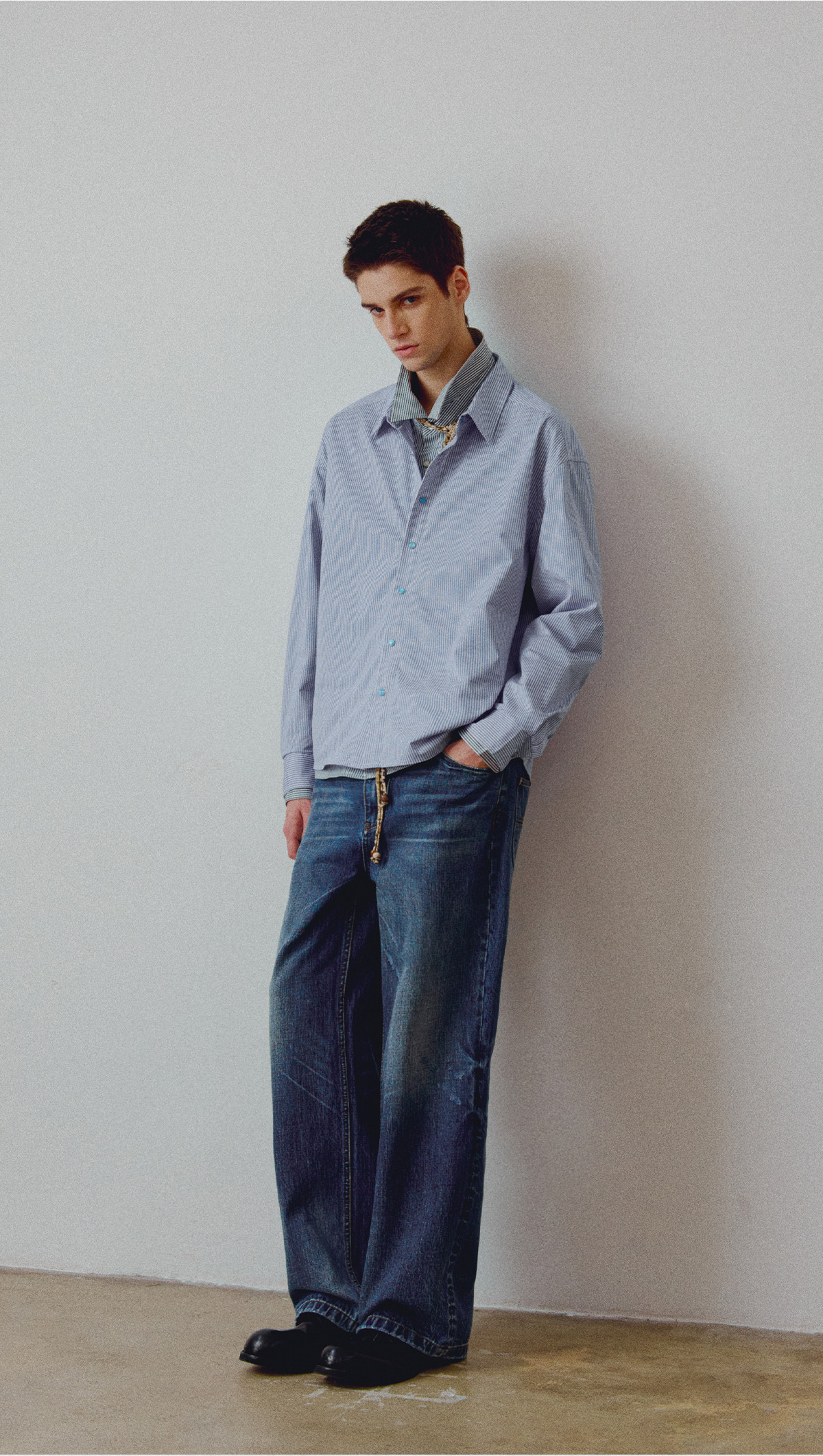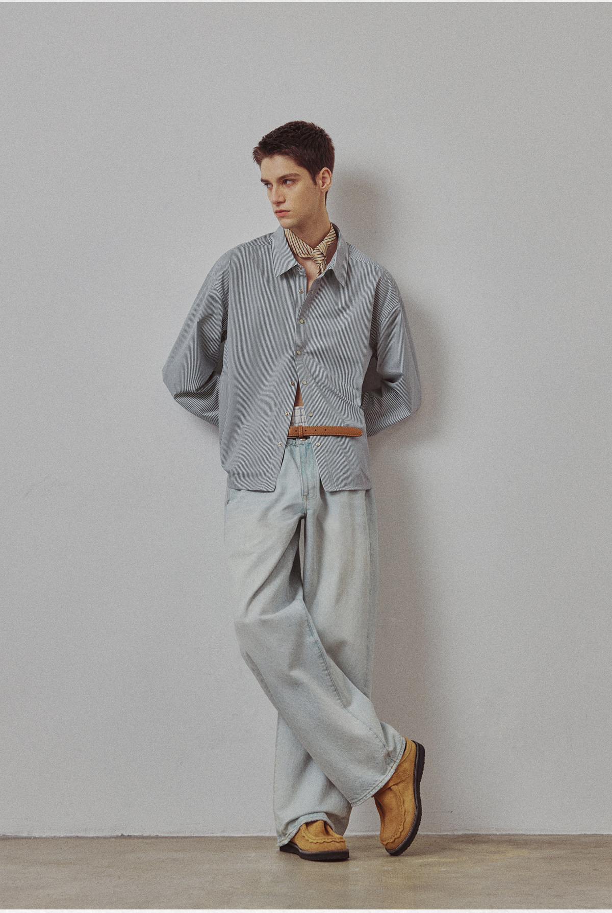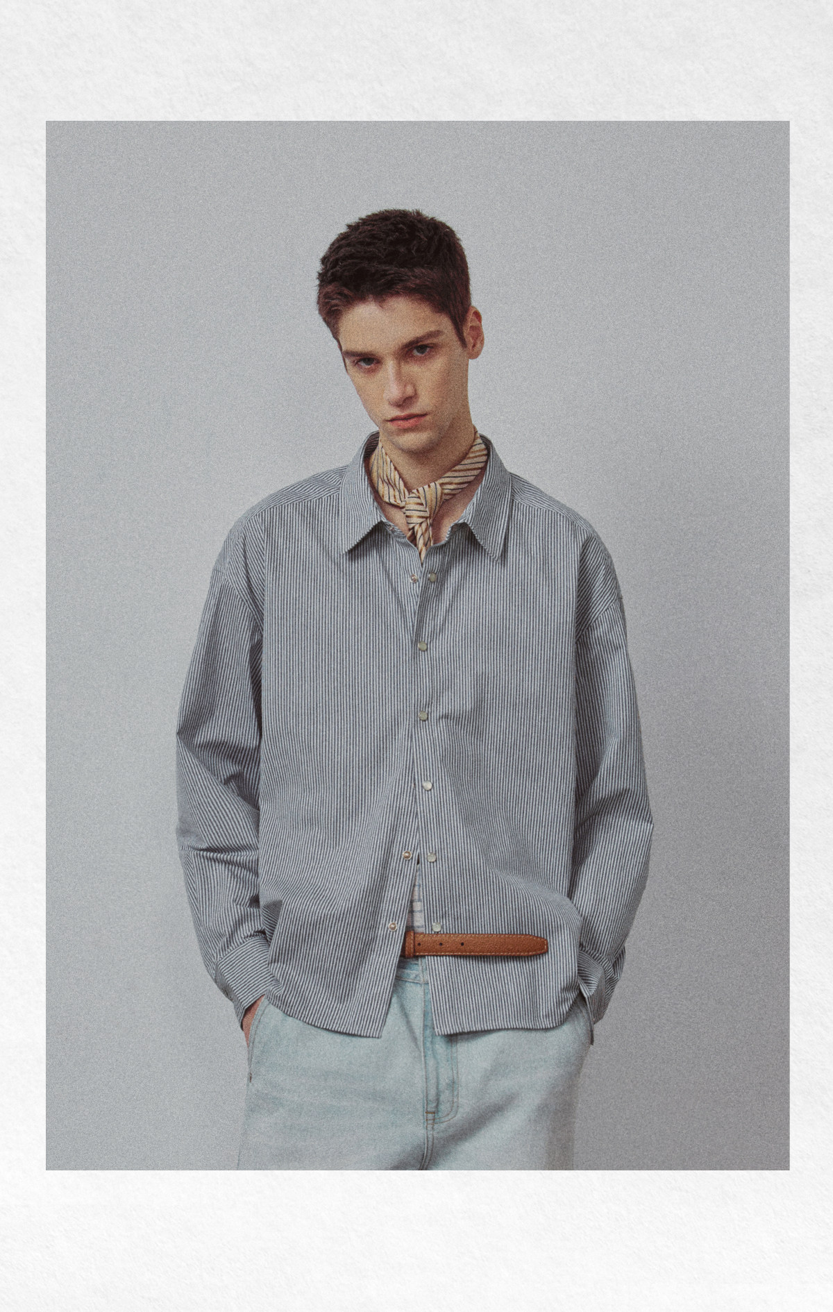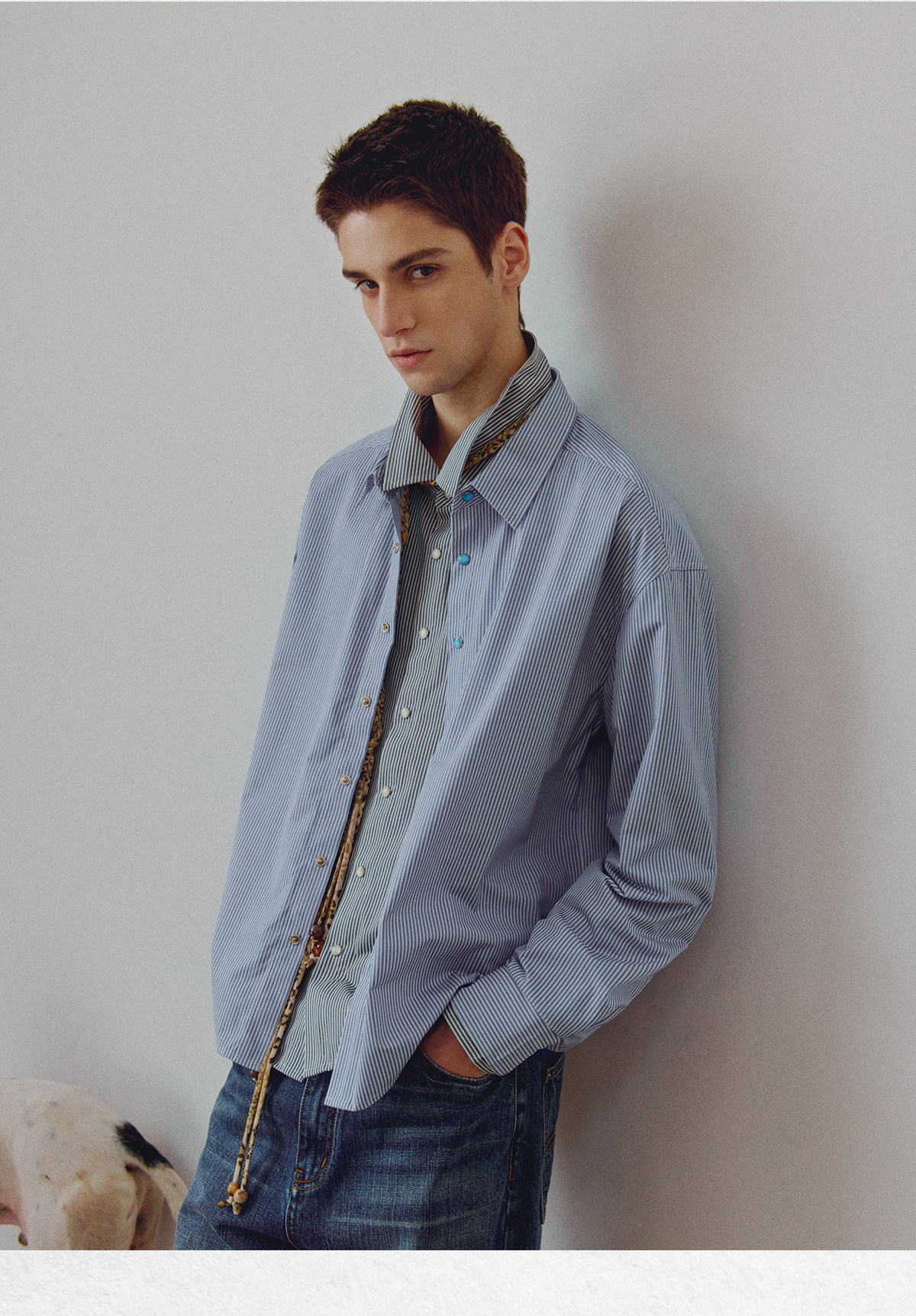 714street高端线BEHALF 东丽「猫眼扣」筋骨感条纹记忆回弹衬衫