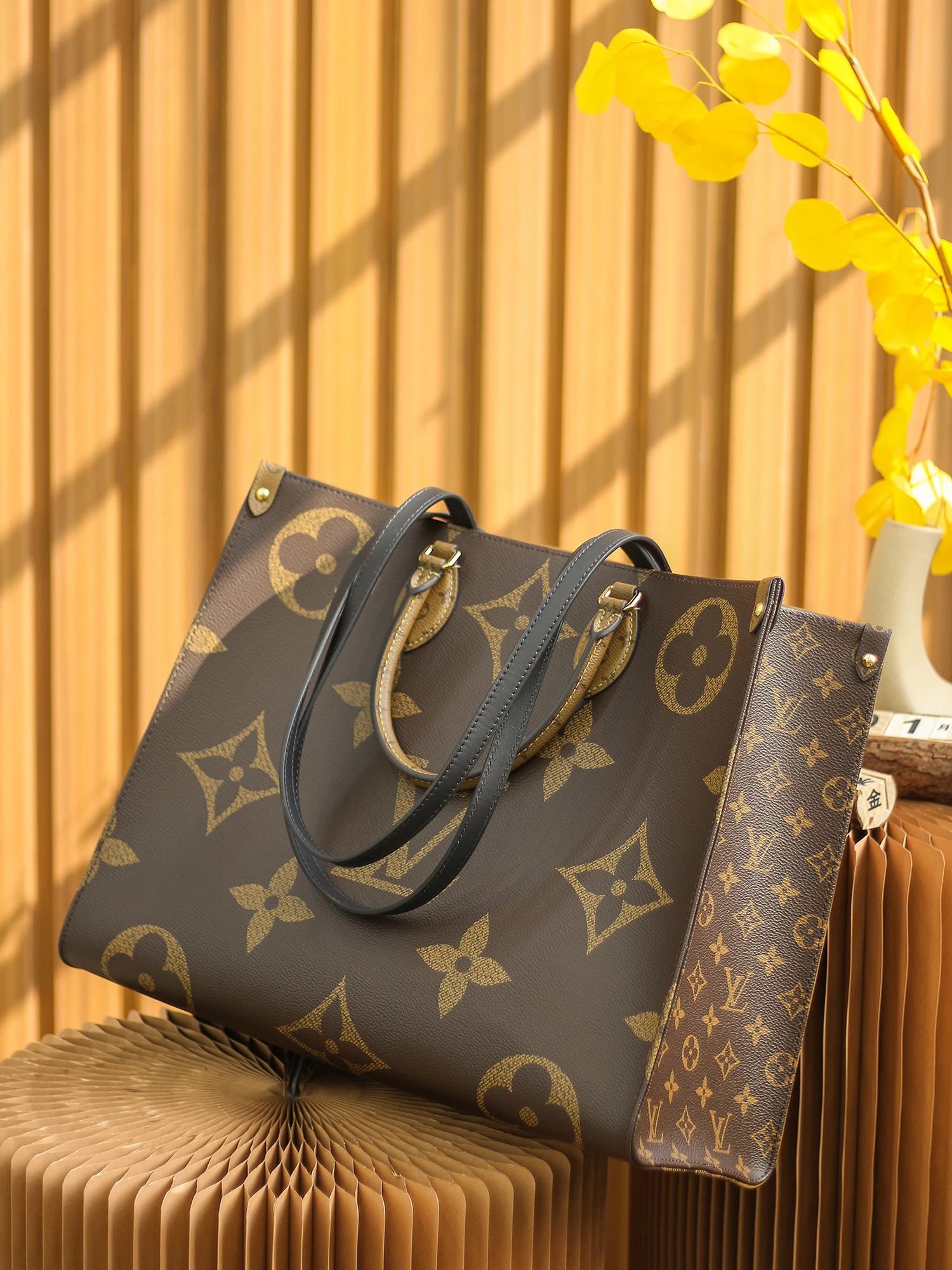 新款onthego tote托特包,今年这个大华系列的风吹得特别的火,经典的花色是一直吸引着每个女人种草的心,大花色显得更加时尚高档,购物袋的造型是每个女人必备的一只包,这次新版本把肩带改为皮革设计,更是如虎添翼,看上去更有质感!、