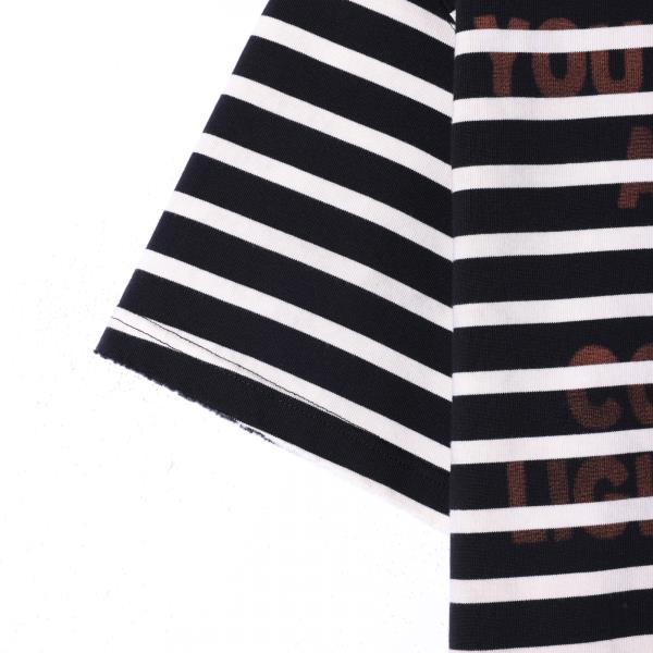 T2980夏季高级感新款韩版撞色条纹刺绣标圆领短袖T恤情侣复古套头上衣