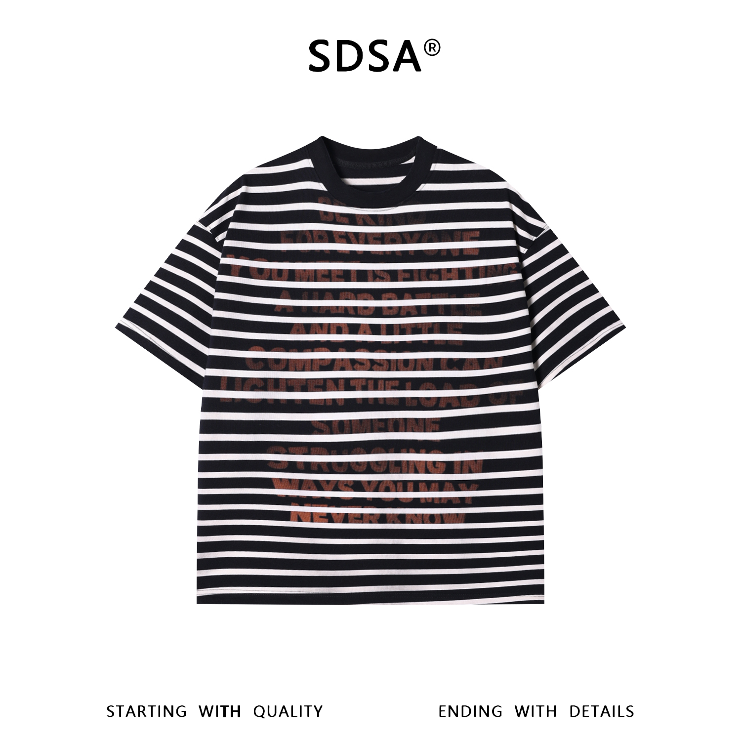 SDSA男装2026新款高贵轻奢美式撞色条纹印花字母圆领短袖T恤百搭
