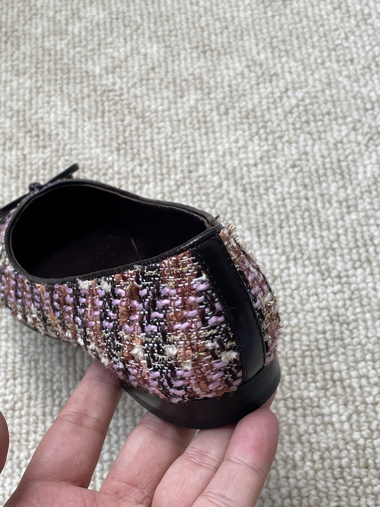 TB小香风鞋 这是五月份刚交付完的订单! 纯纯的原货,早于柜子哈哈! 带着复古法式风格。 鞋面:原厂进口小牛皮 内里:小羊皮 鞋底:原厂真皮底
