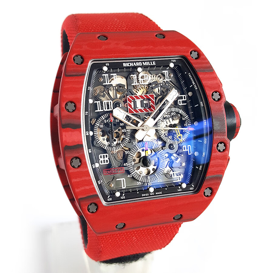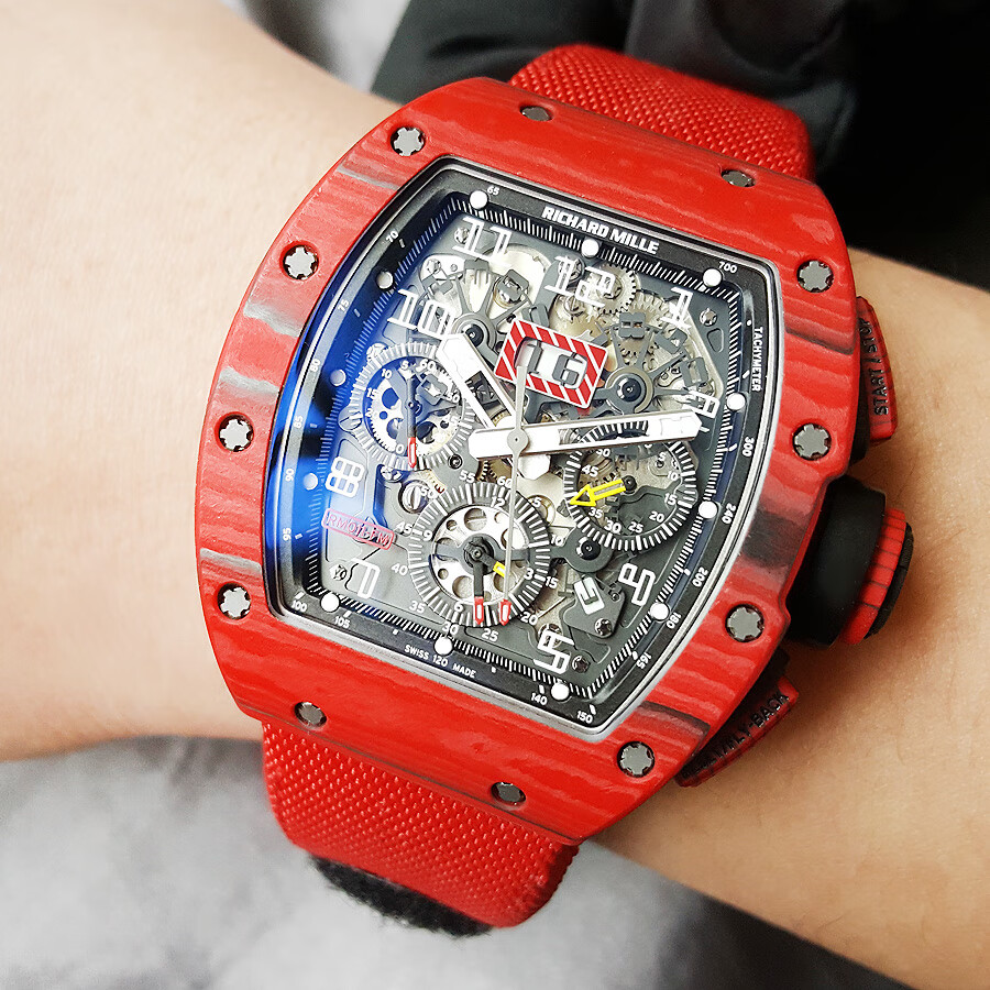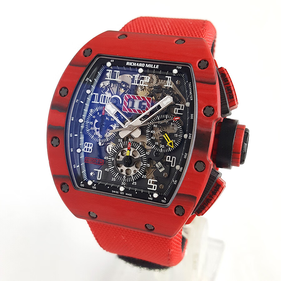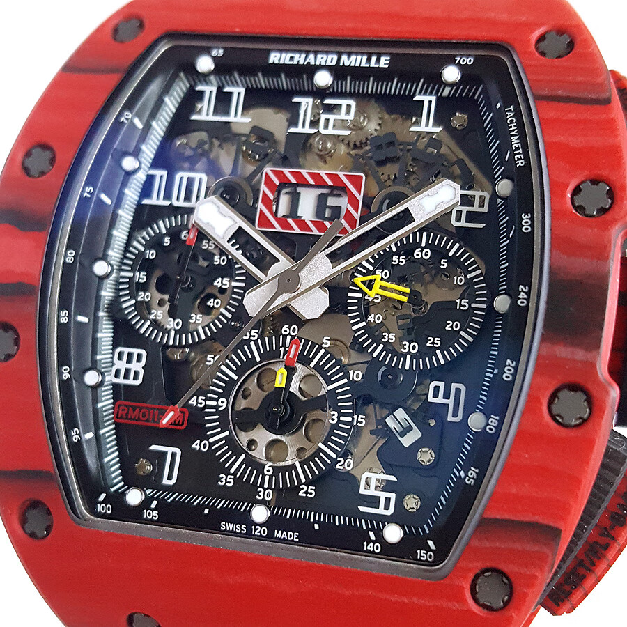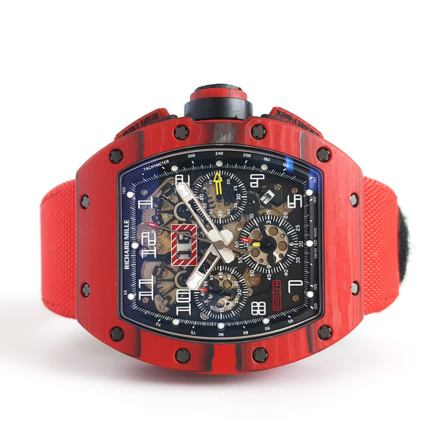 稀缺珍藏【95新】理查德米勒男士系列NTPT碳纤维与黑色树脂50*40mm大日历视窗计时飞返指针自动机械男款腕表RM011 RED TPT 130323LV03