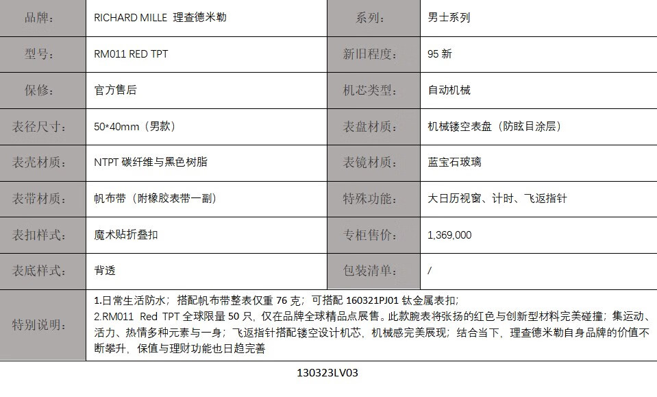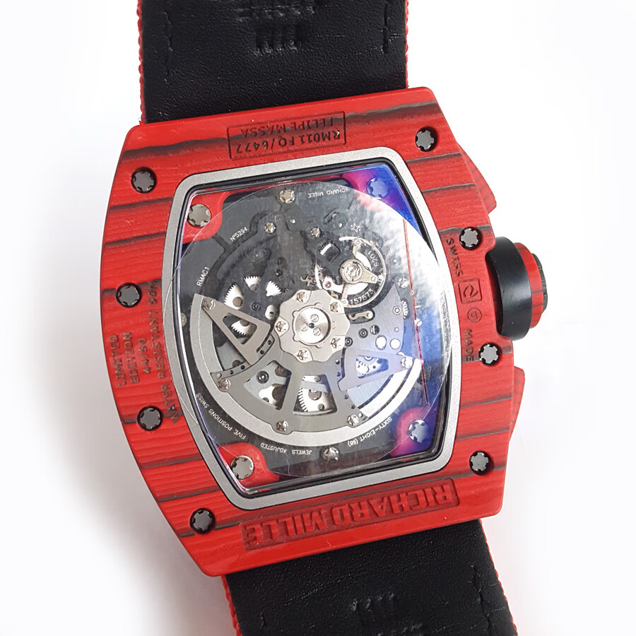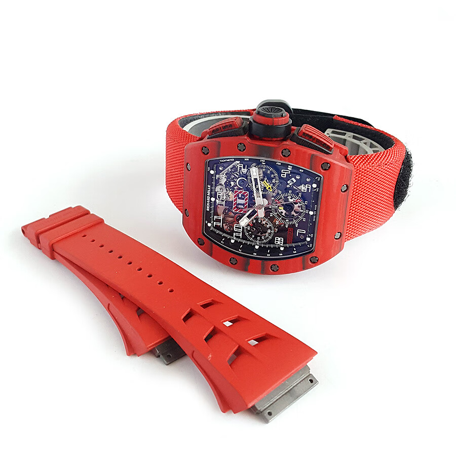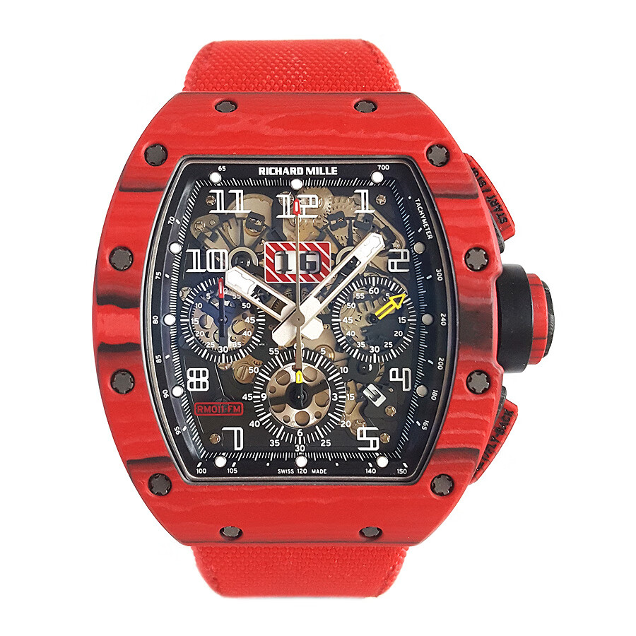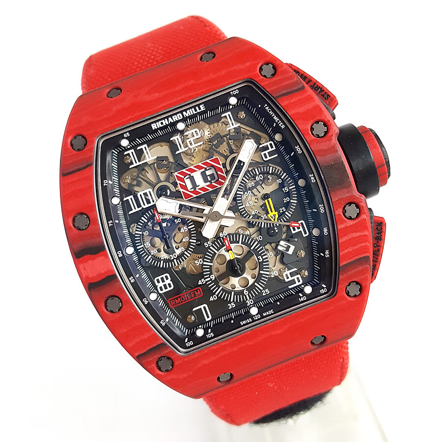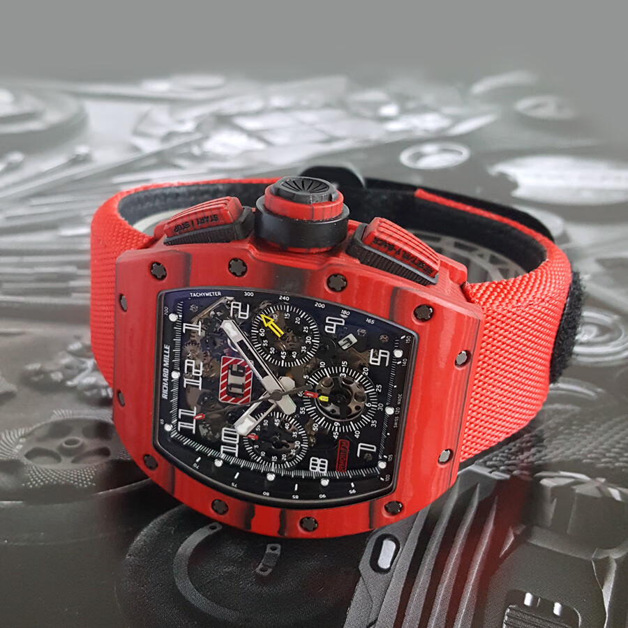 稀缺珍藏【95新】理查德米勒男士系列NTPT碳纤维与黑色树脂50*40mm大日历视窗计时飞返指针自动机械男款腕表RM011 RED TPT 130323LV03
