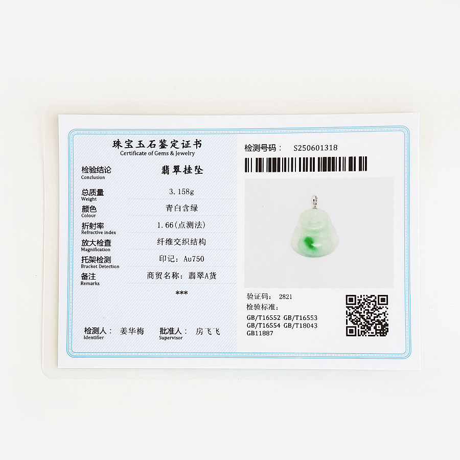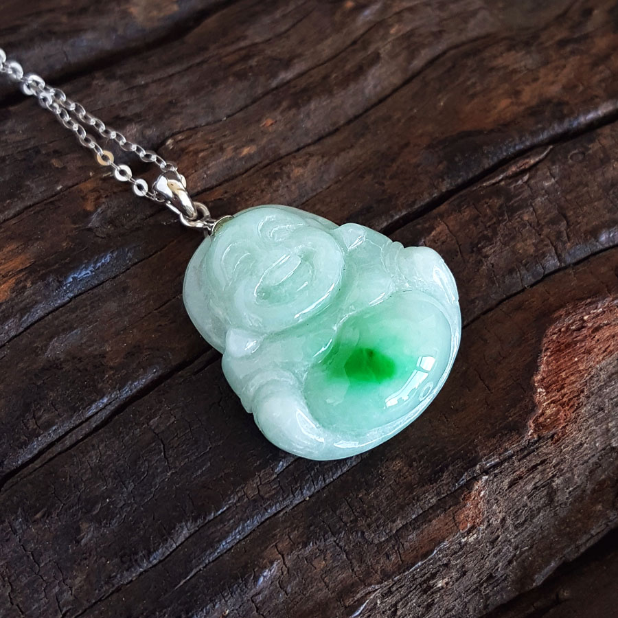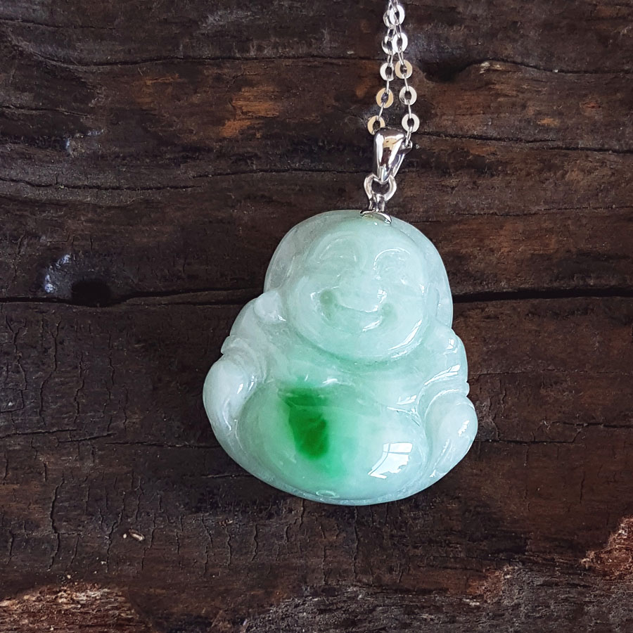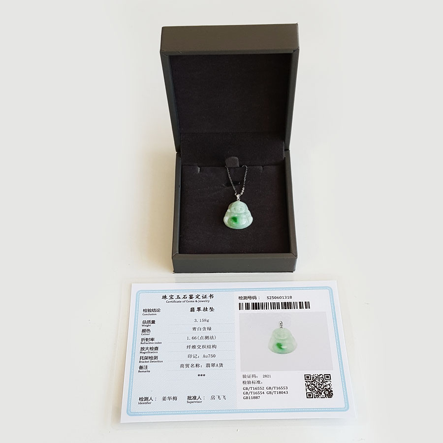 名称 | AU750白金镶天然细腻糯种白底飘阳绿佛公翡翠吊坠项链 |