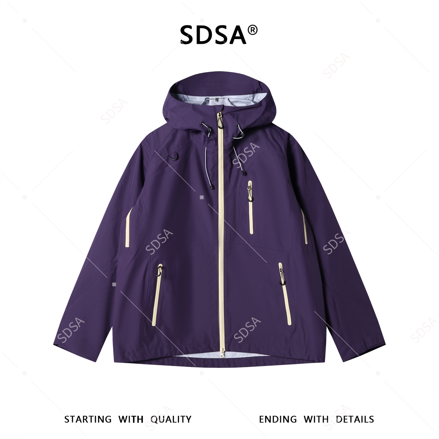 SDSA男装2026新款高贵轻奢时尚机能风拉链立领连帽夹克冲锋衣百搭