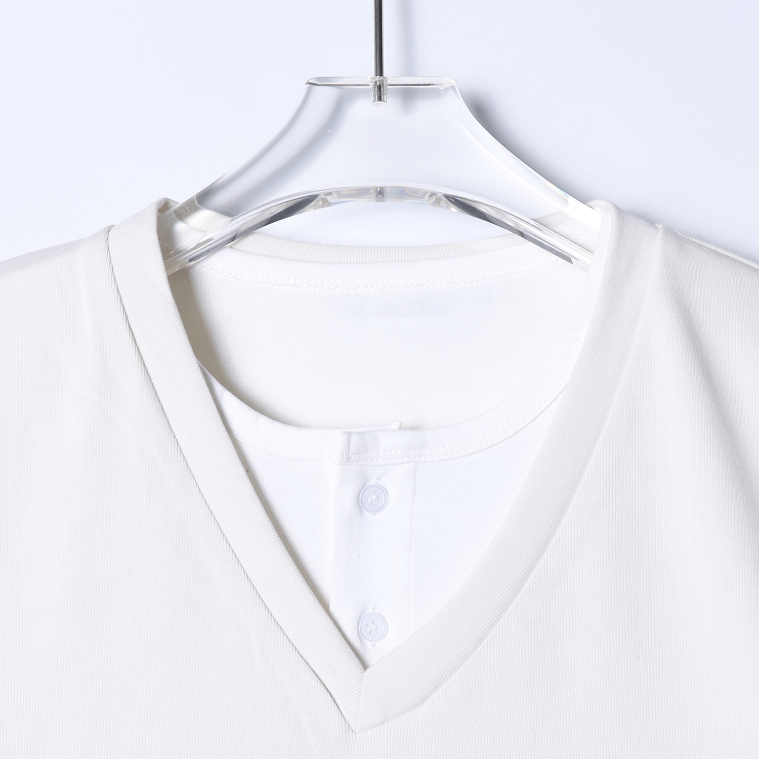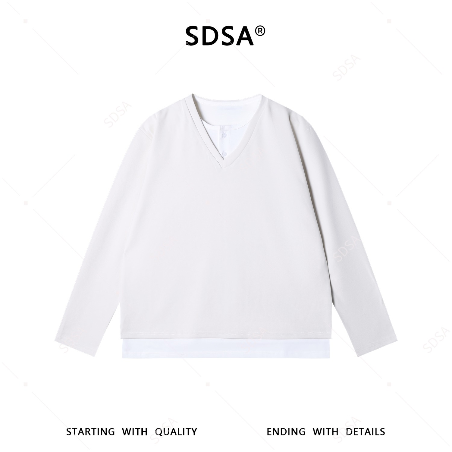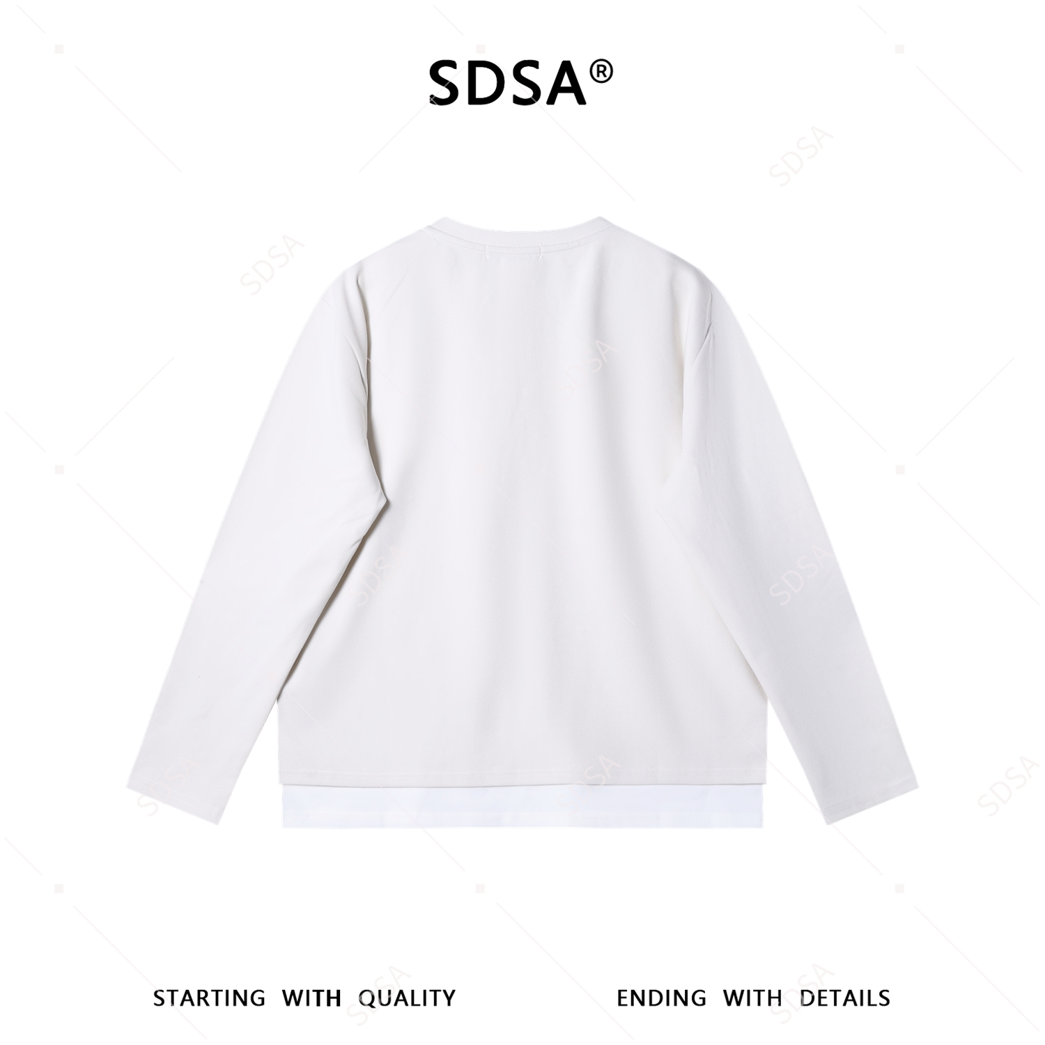SDSA男装2026新款轻奢韩版简约撞色拼接假两件圆领长袖T恤百搭