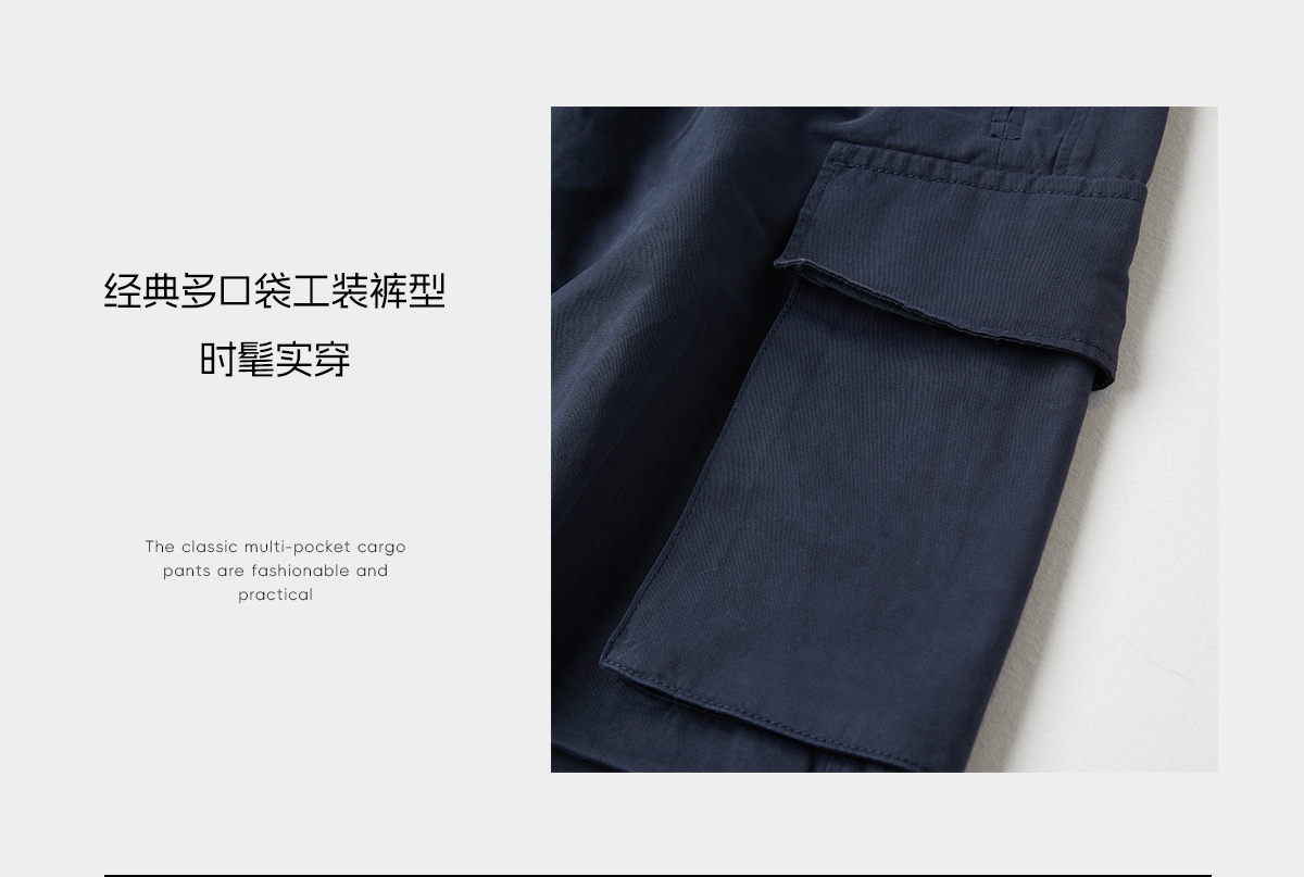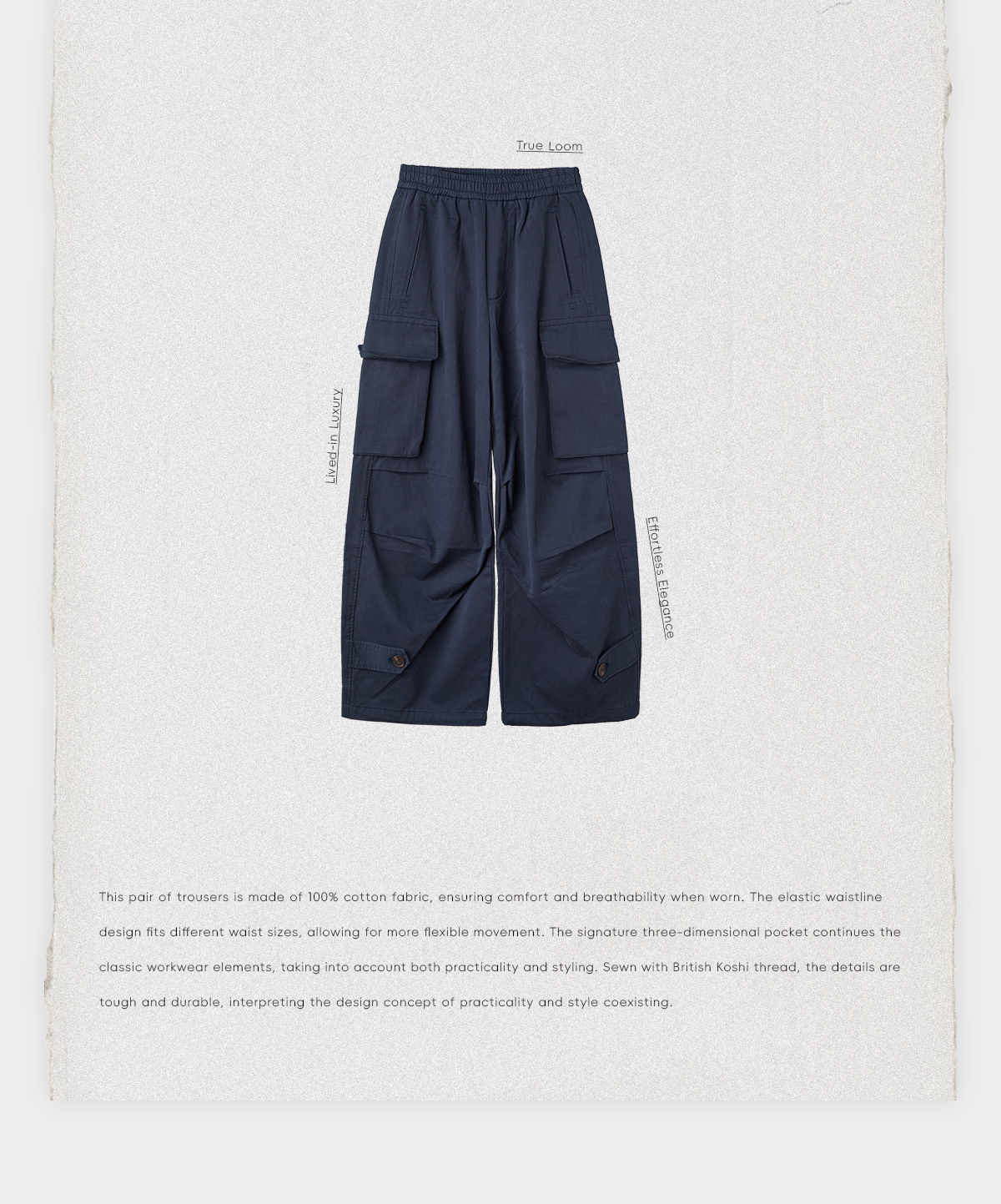 ROMI STUDIO“美式腔调”多口袋宽松棉质深蓝直筒工装裤RWCAX86173