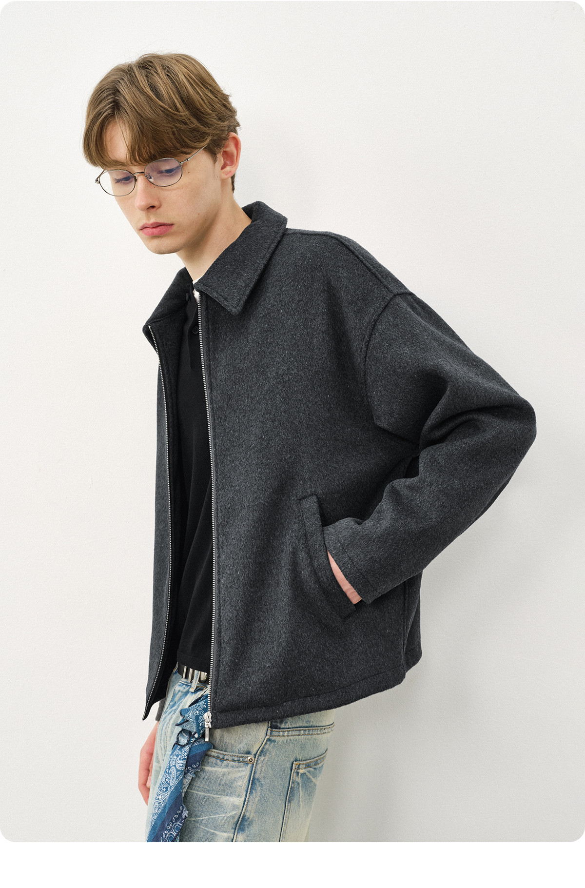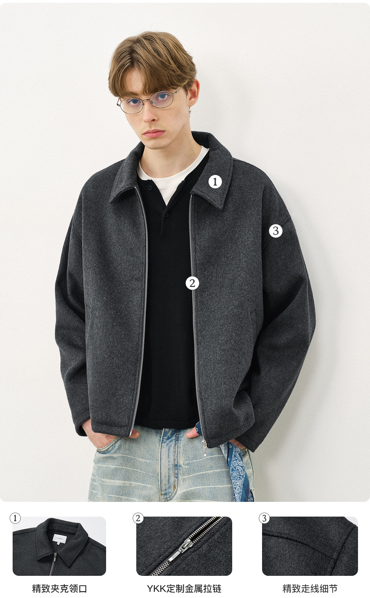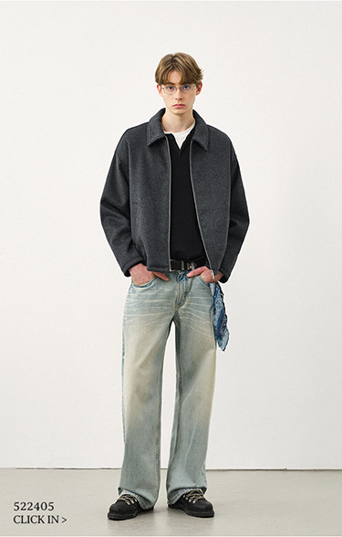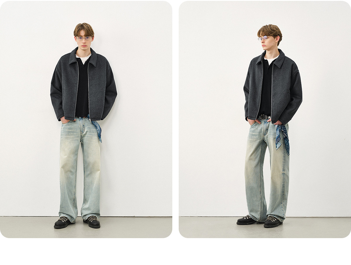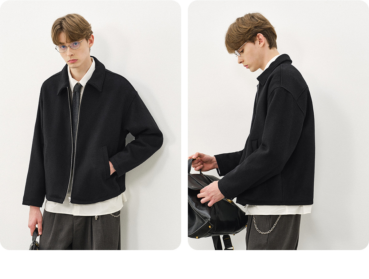 714street老钱风穿搭羊毛混纺翻领夹克 2025秋冬款廓形毛呢外套男
