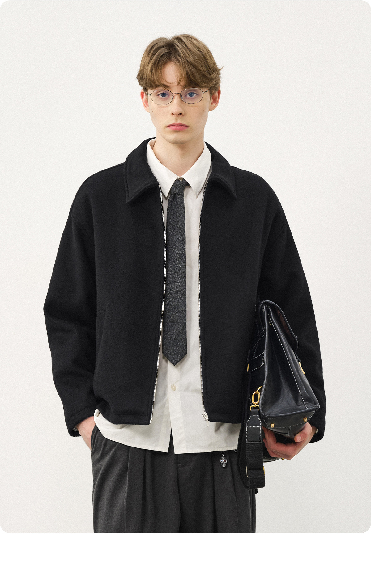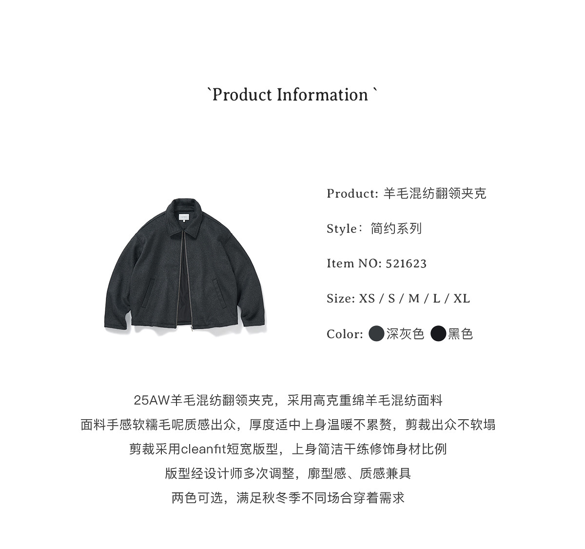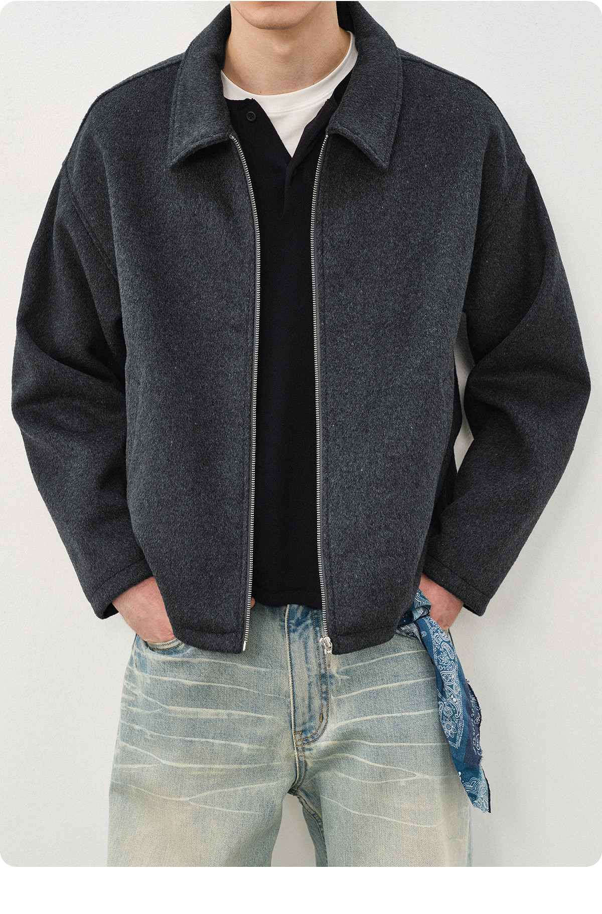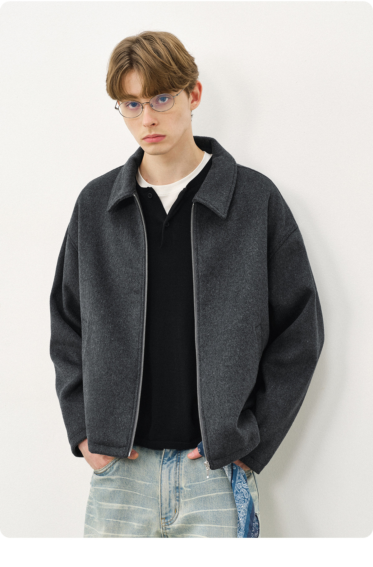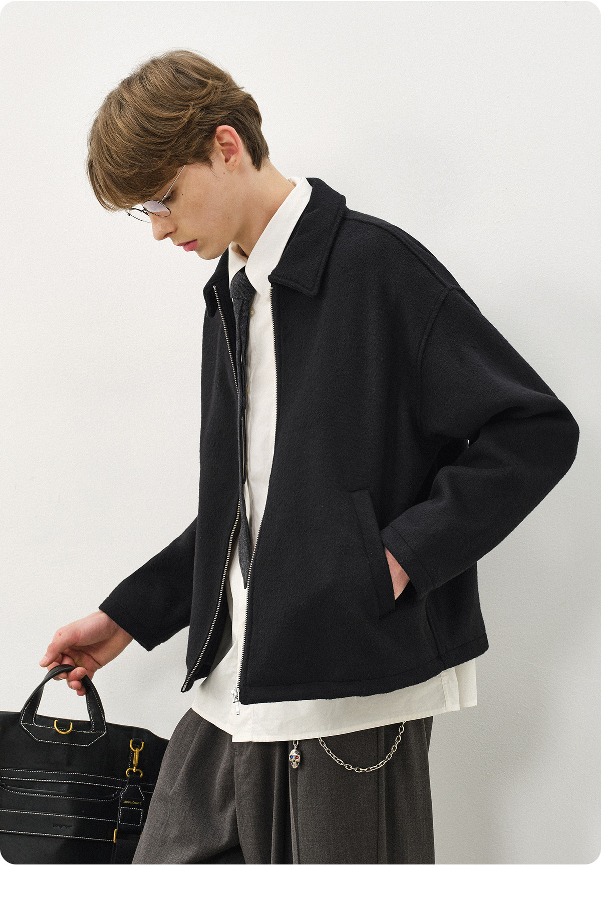 714street老钱风穿搭羊毛混纺翻领夹克 2025秋冬款廓形毛呢外套男