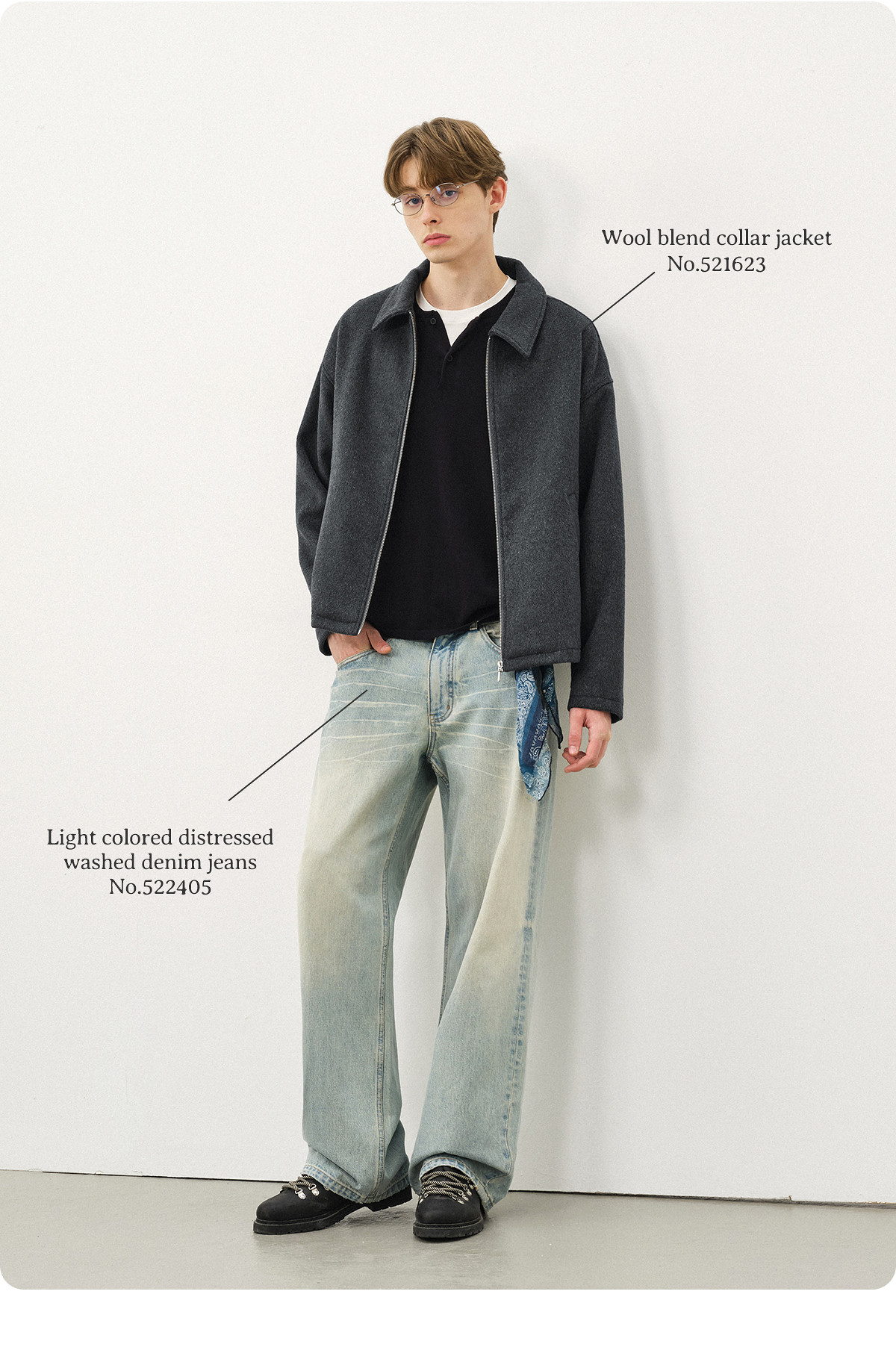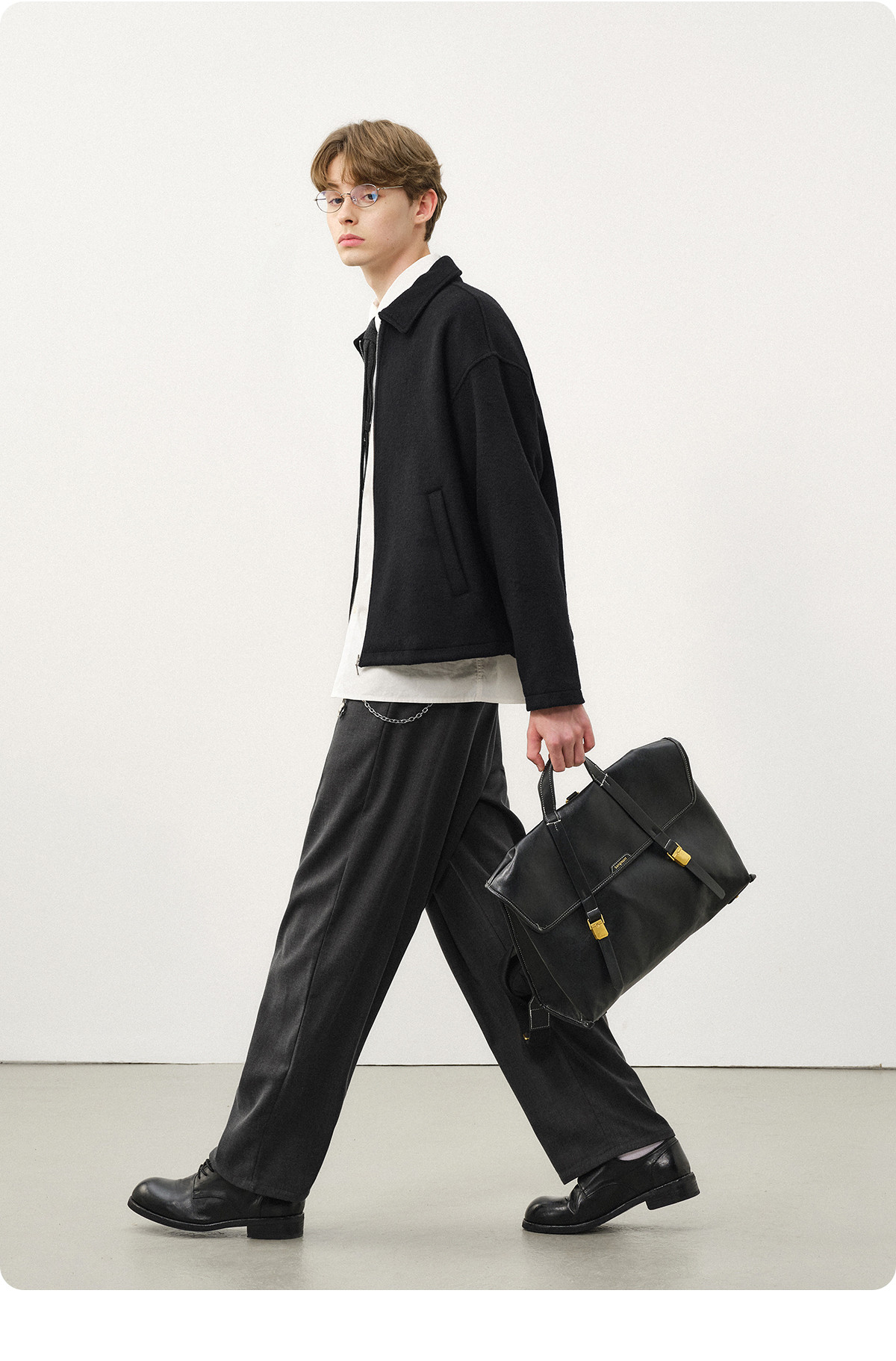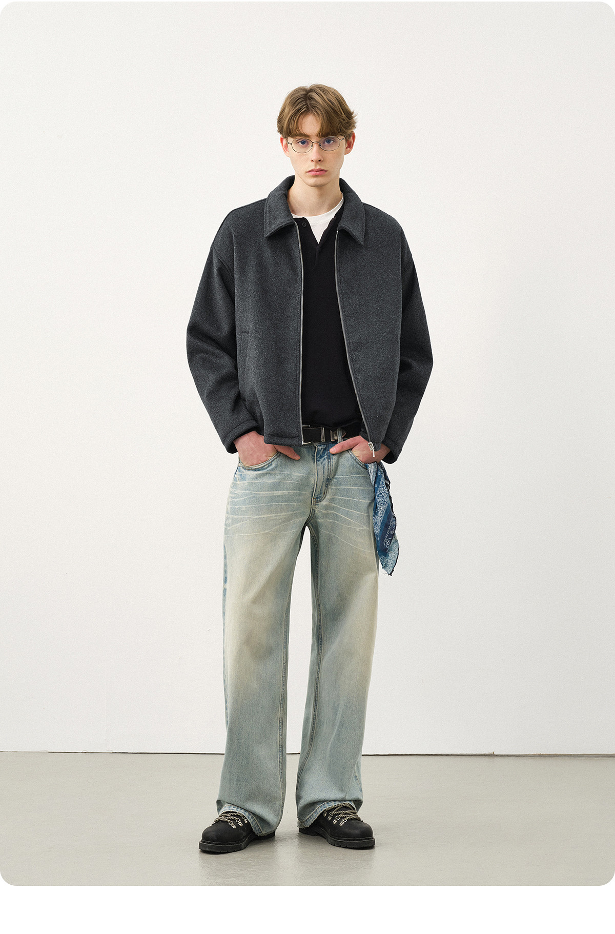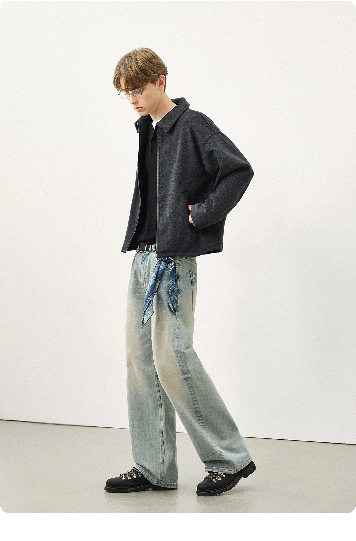 714street老钱风穿搭羊毛混纺翻领夹克 2025秋冬款廓形毛呢外套男