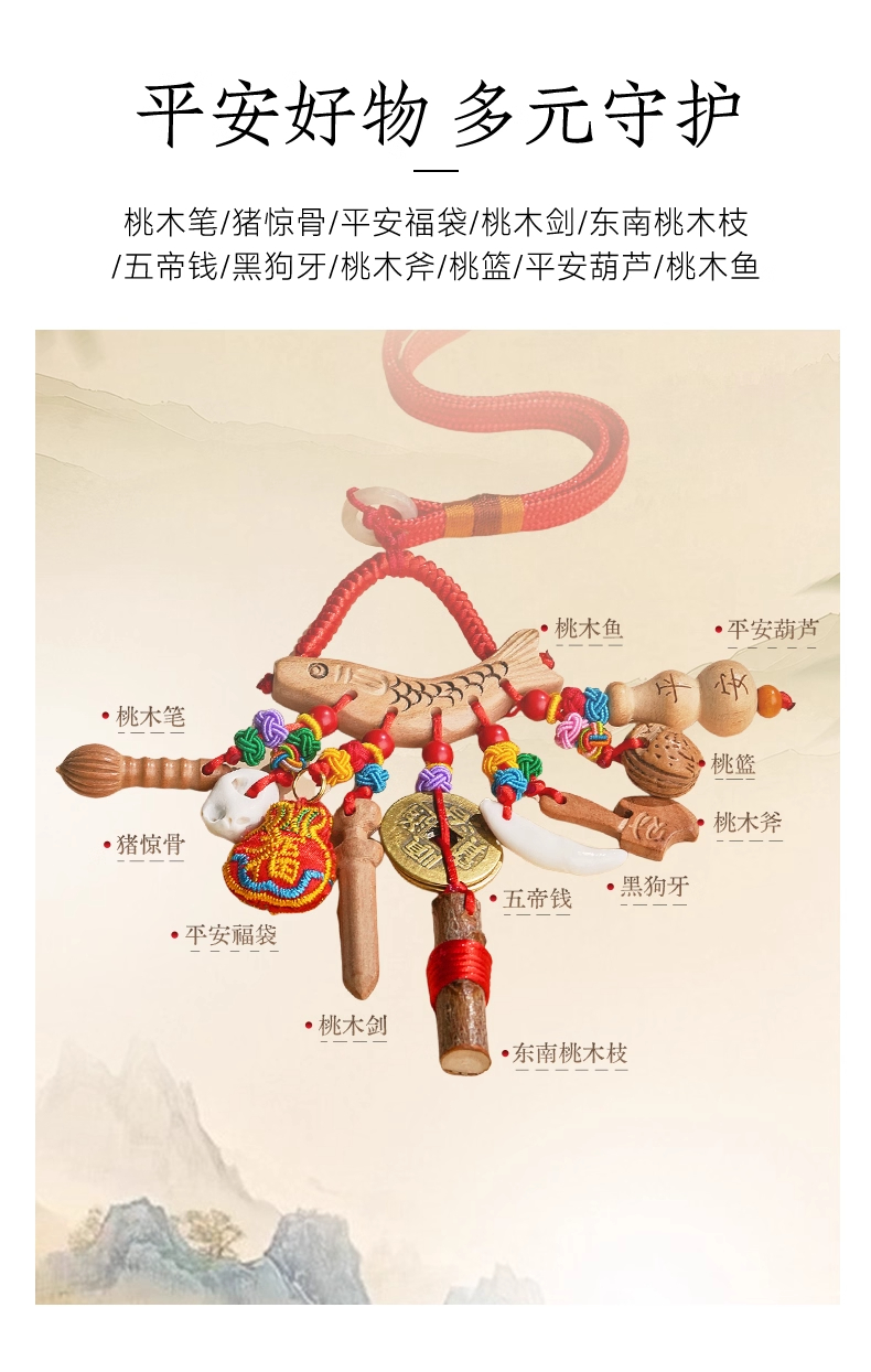【普陀山】护身符桃木剑挂件-祝福后发货