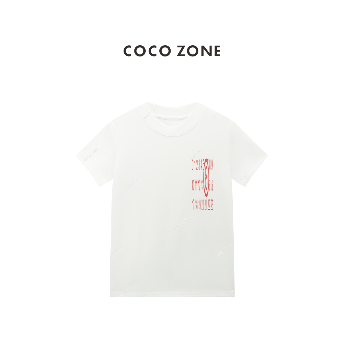 COCO ZONE 莱塞尔绵羊毛混纺时尚数字印花短袖T恤CC1B1431