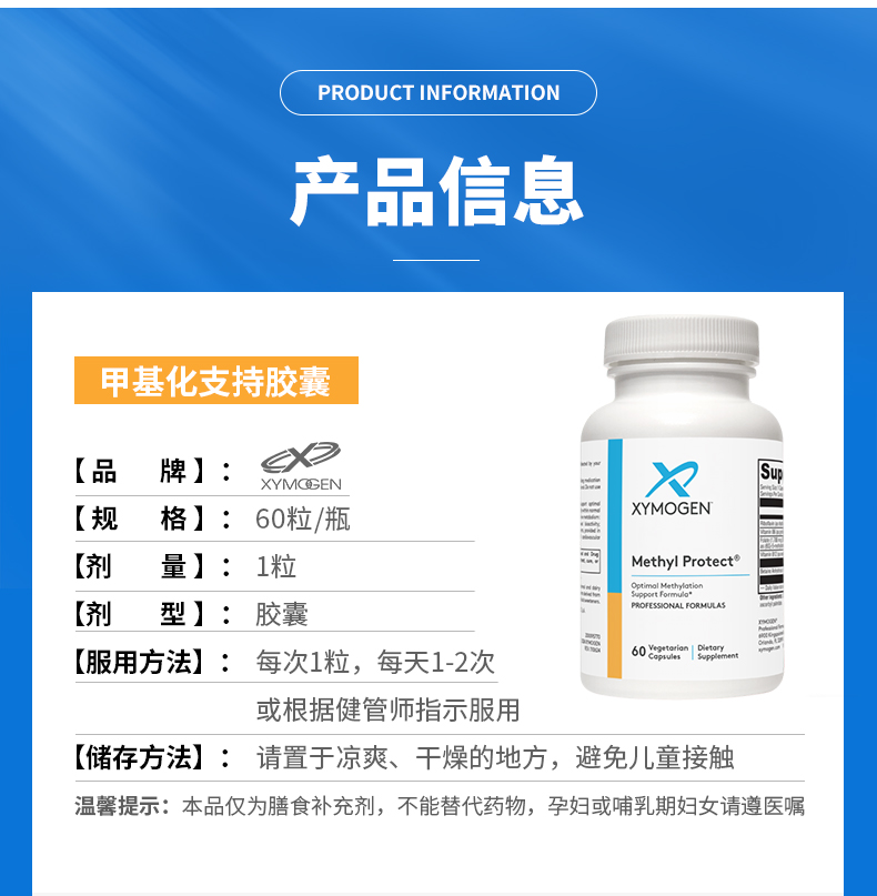 【效期至26年8月】甲基化胶囊 XYMOGEN Methyl Protect 60粒/瓶