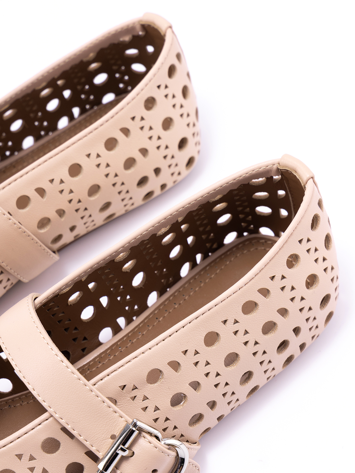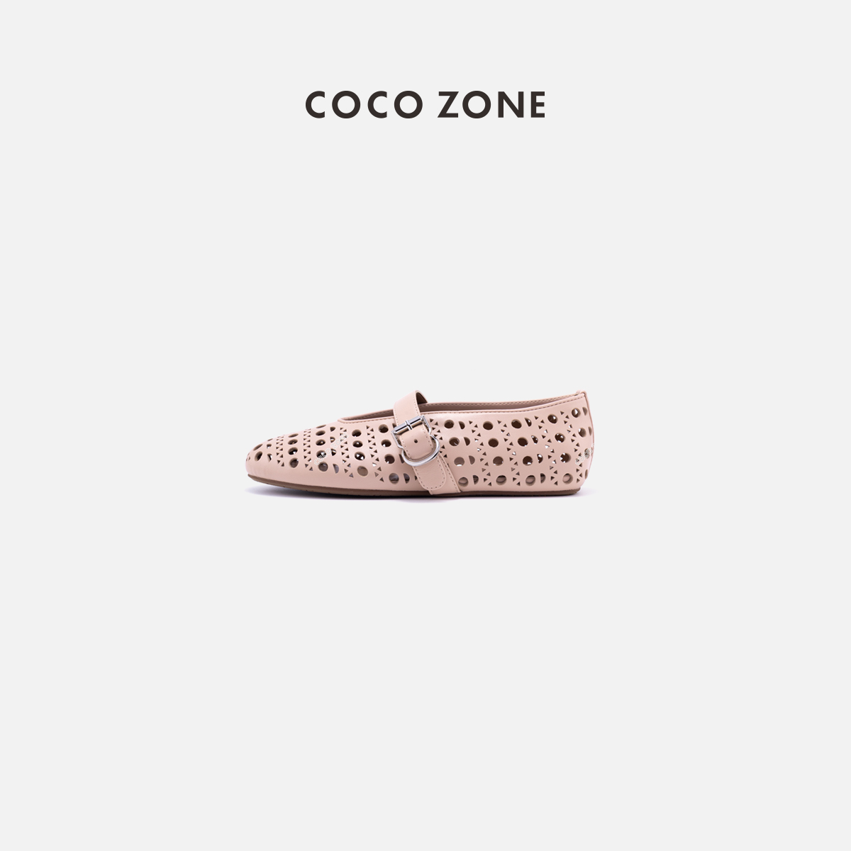 COCO ZONE2024夏季浅口一字带单鞋时尚镂空百搭平底鞋CC2B0881