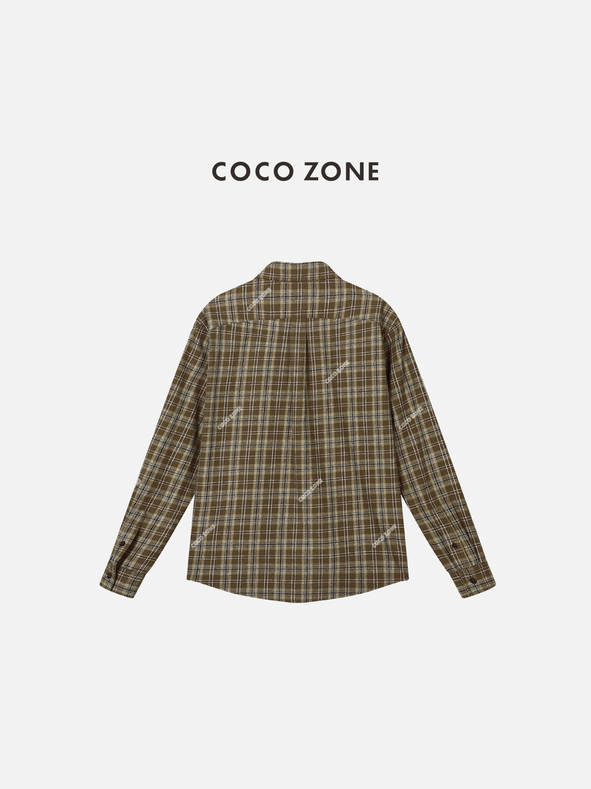 COCO ZONE 100%棉格子衬衫宽松设计感小众别致衬衣23C19241