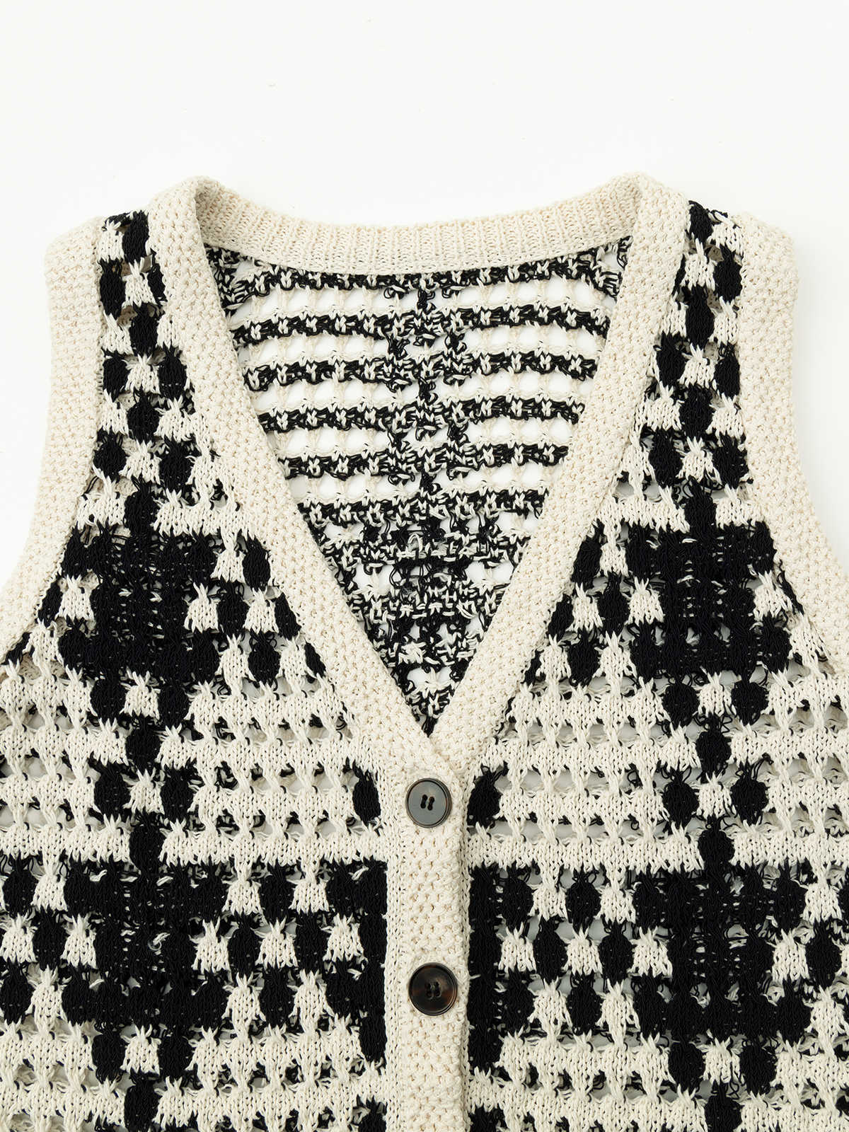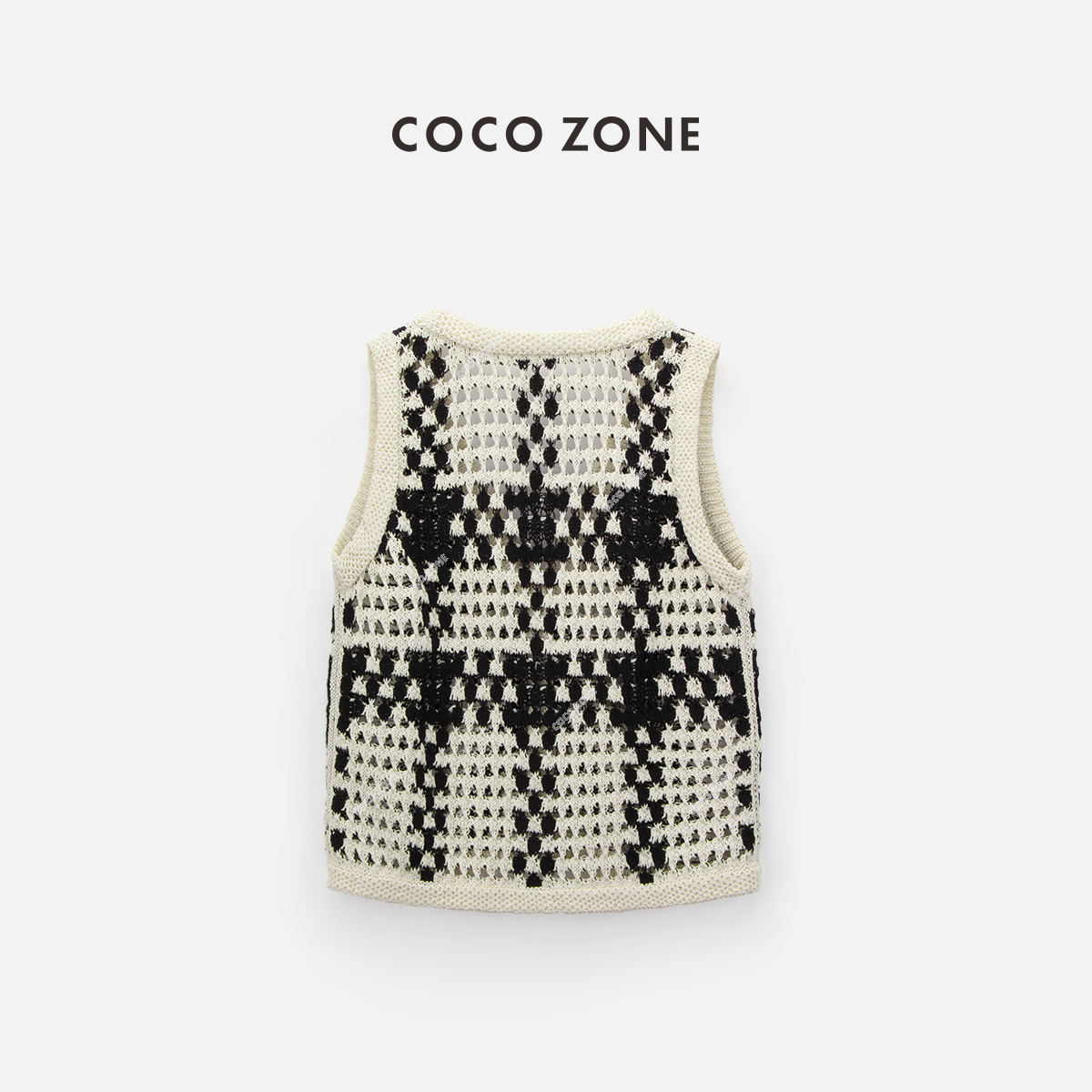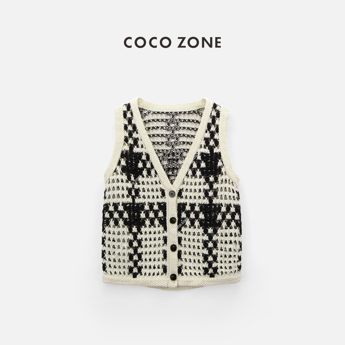COCO ZONE"黑栗子“复古时尚镂空设计感无袖针织马夹百搭单排扣上衣CC1B1039