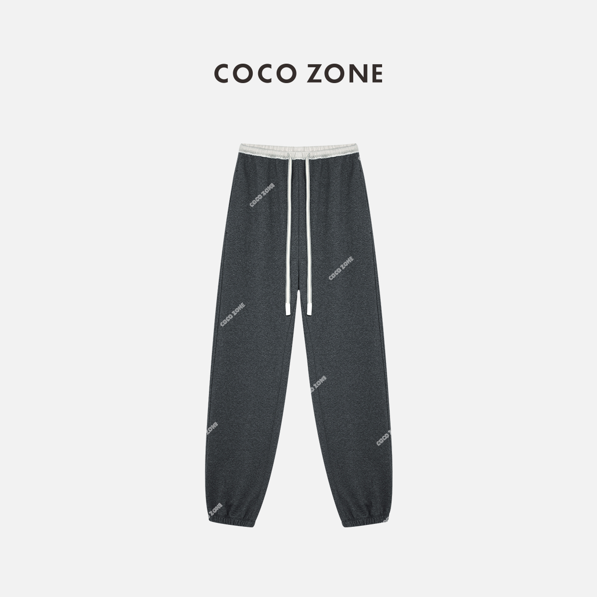 COCO ZONE抽绳松紧腰撞色边束脚裤休闲运动长裤24C10277