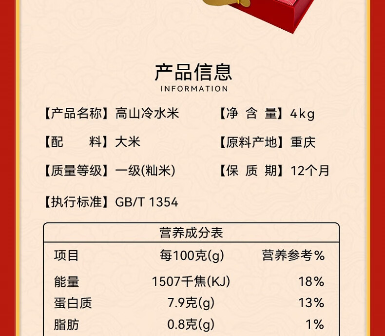 农掌柜高山冷水米 财神稻4kg/盒(内含4个1kg独立包装)