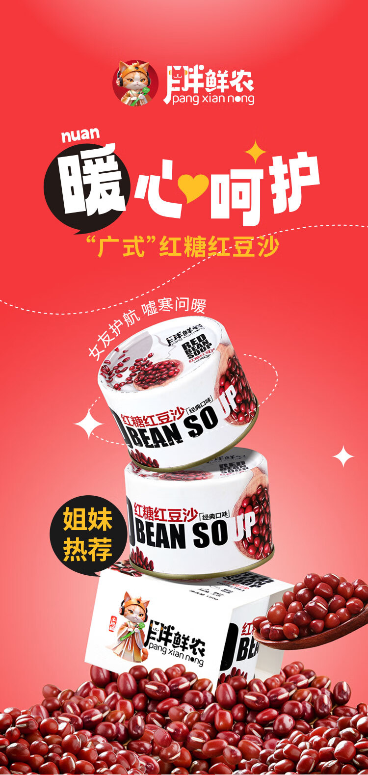 【3000元充值赠品】胖鲜农 红糖红豆沙罐头180g*5罐