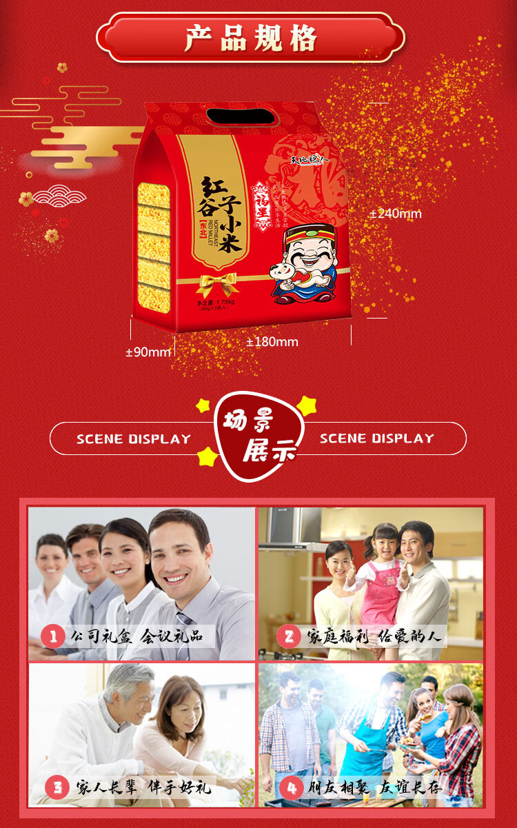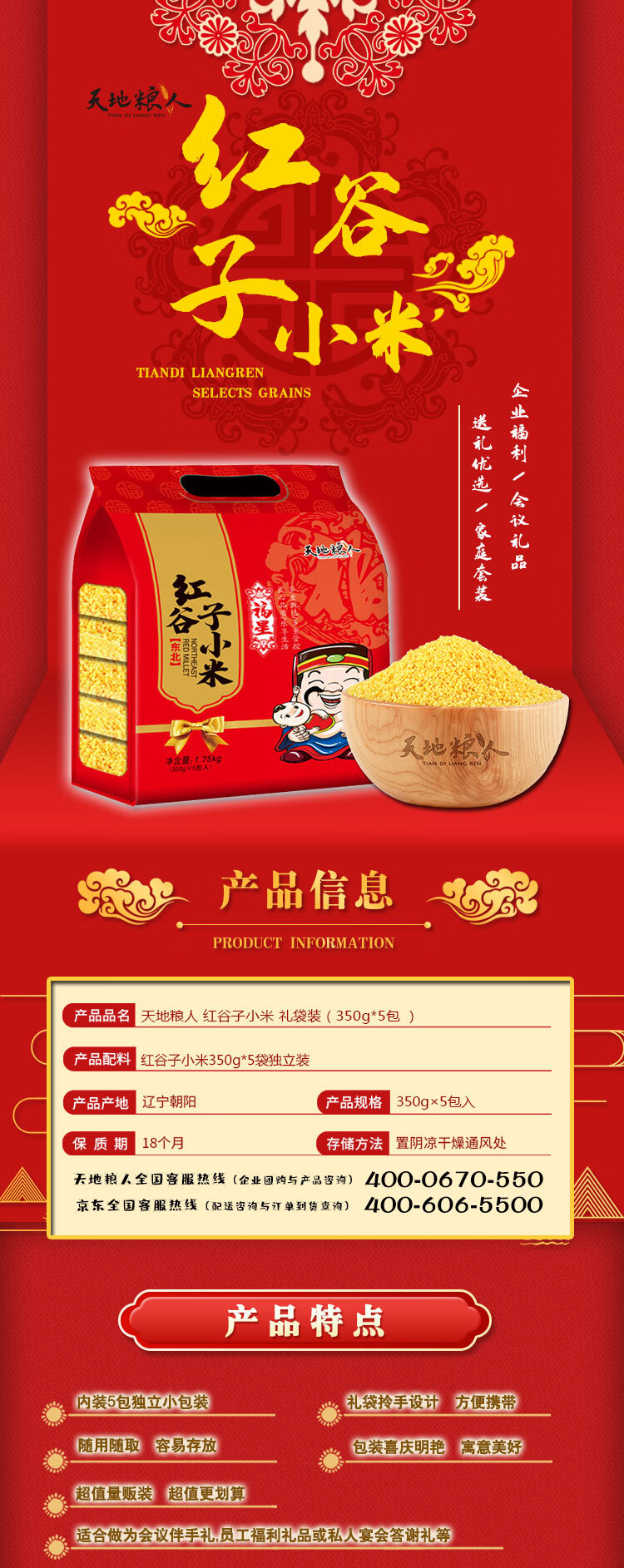 天地粮人 东北红谷子小米 礼袋装 (350g*5包 )