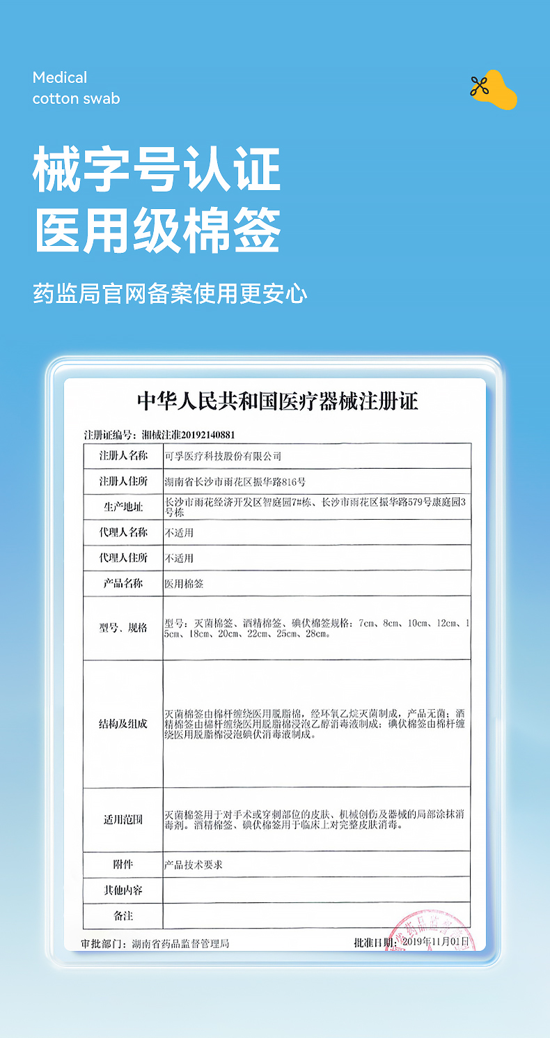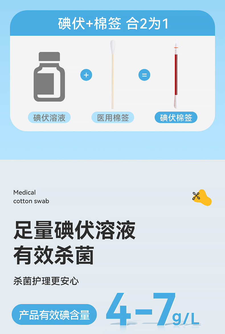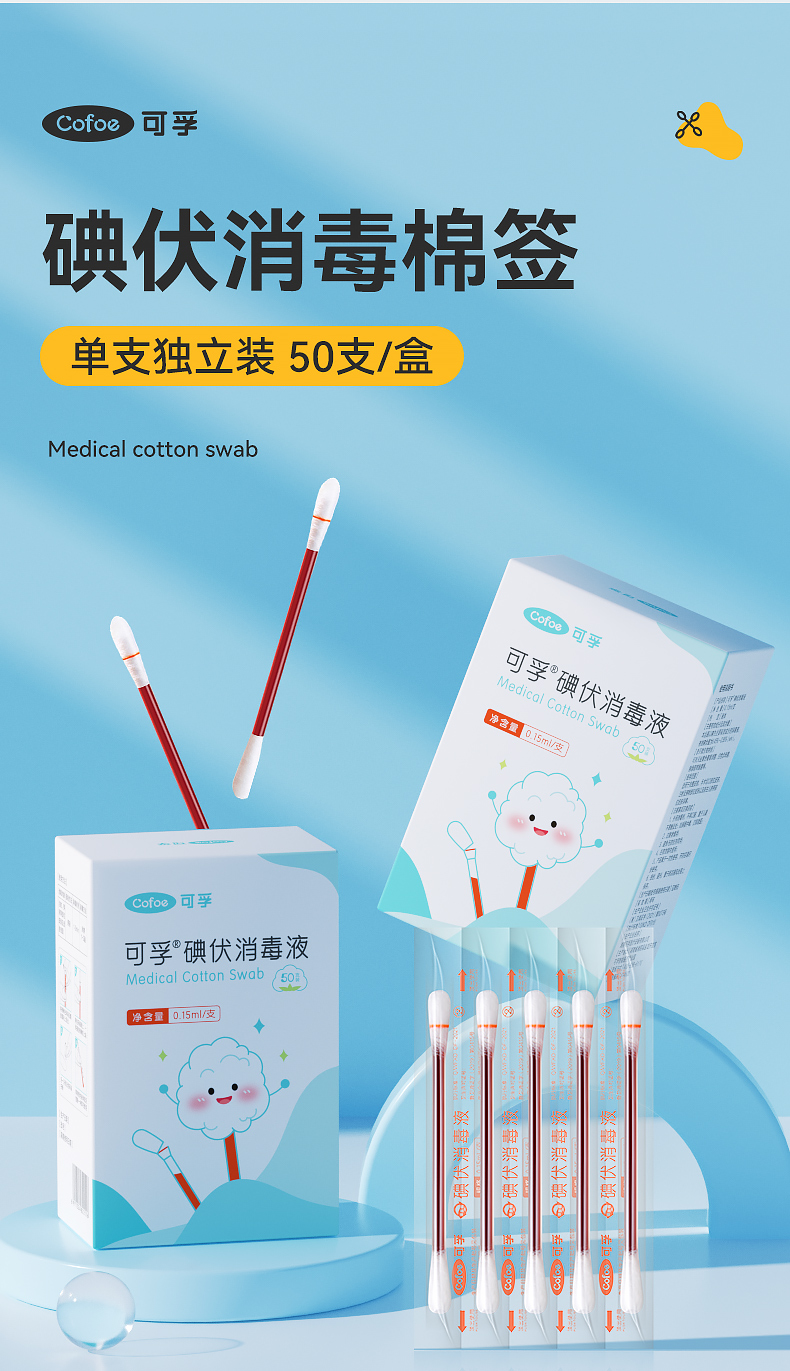 可孚碘伏棉签新生婴儿宝宝专用肚脐伤口一次性消毒医用消毒液棉棒