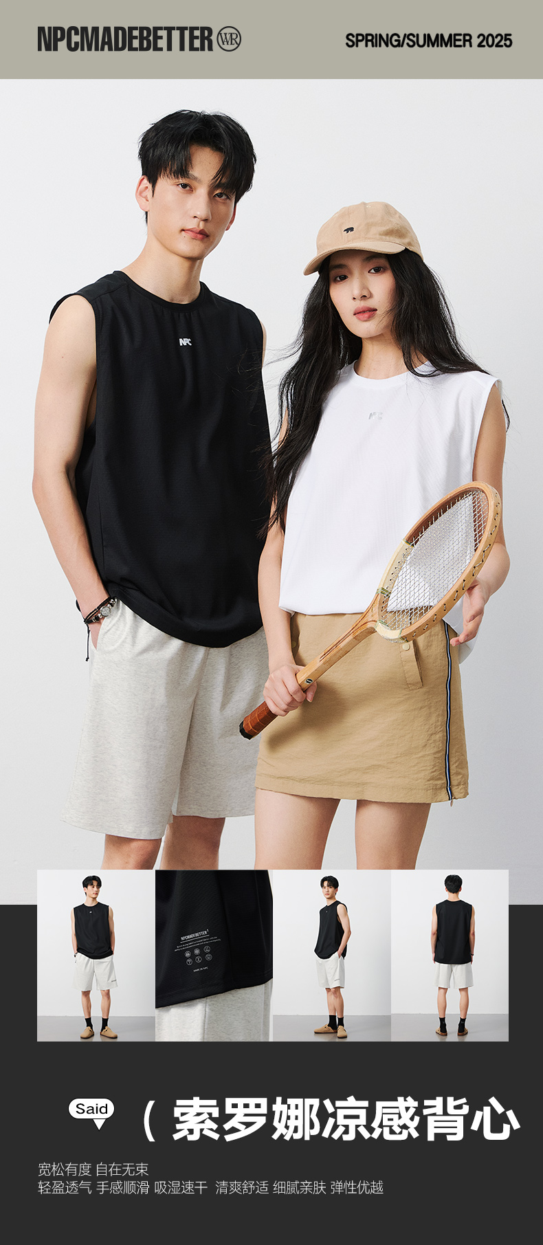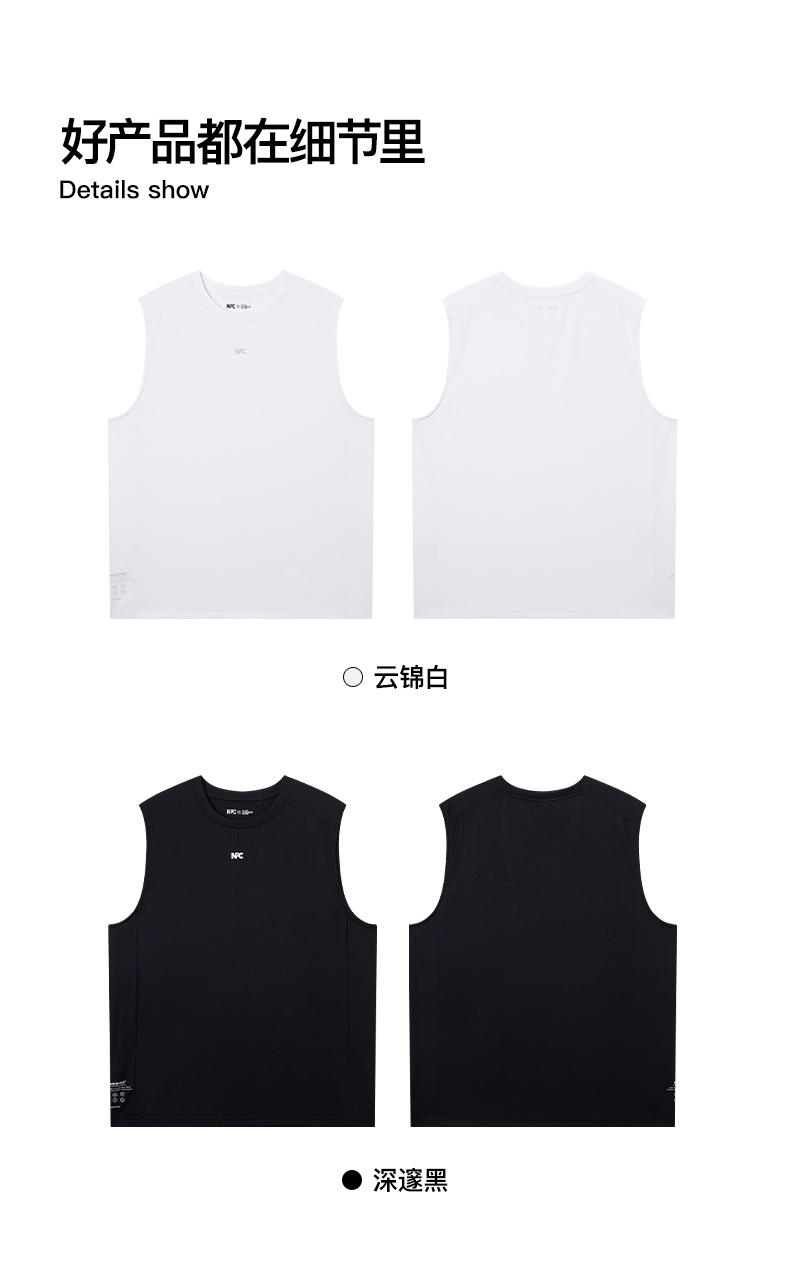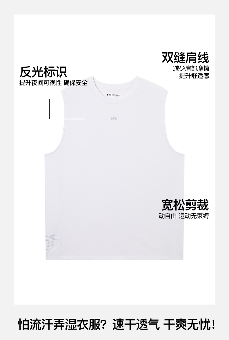 NPC潮牌反光字母印花凉感速干无袖T恤男透气NP52TT11