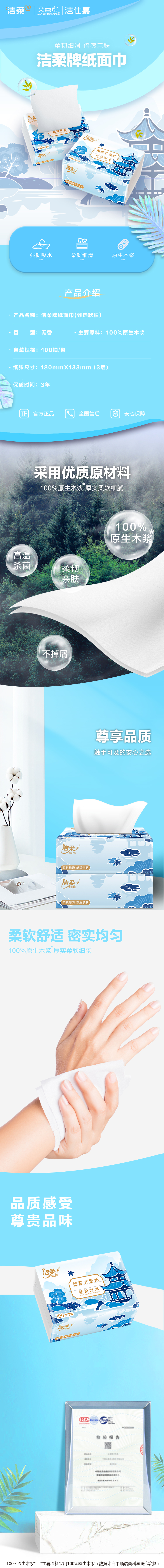 洁柔牌甄选软抽纸 TR097201A 3层100抽180x133mm*24包(3包*8提*1箱)