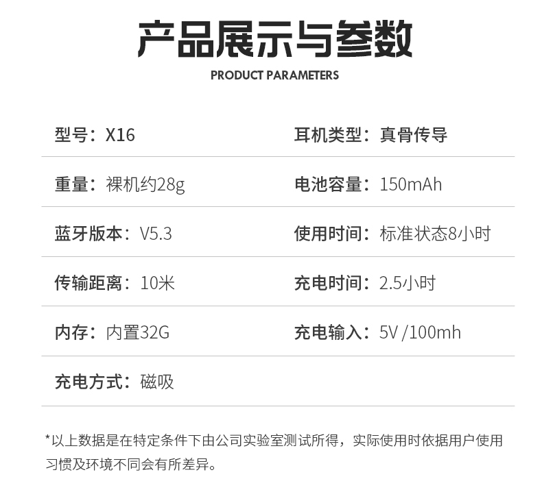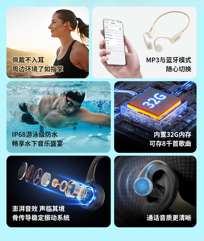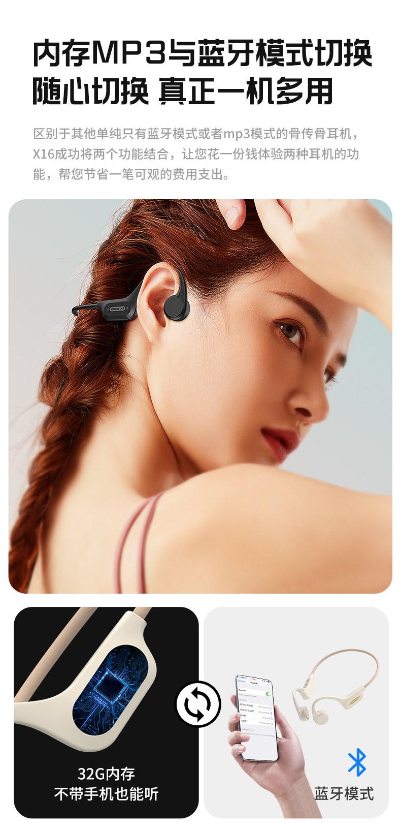 小幽X16骨传导运动蓝牙无线耳机游泳跑步挂脖不入耳长续航