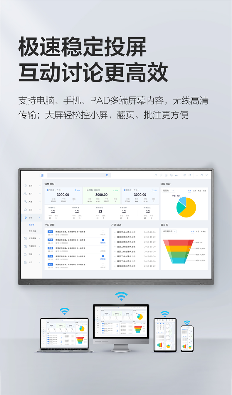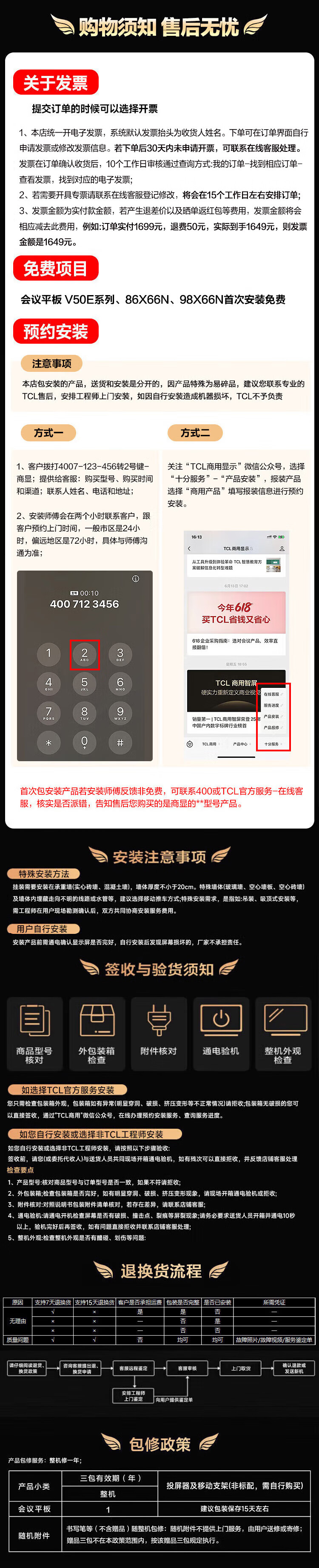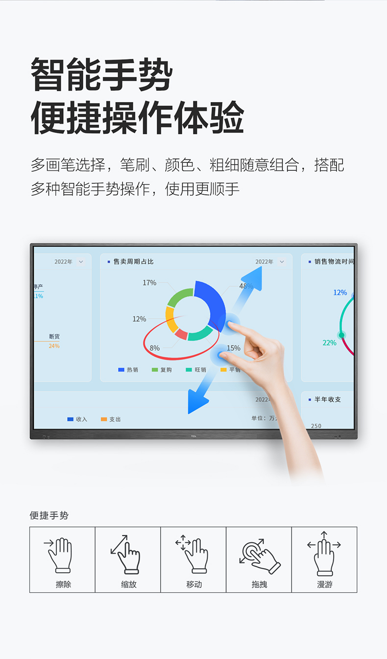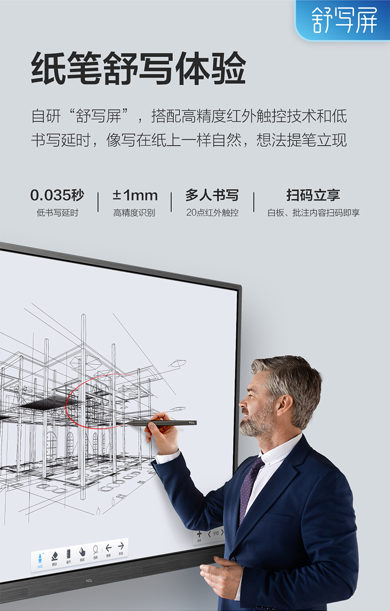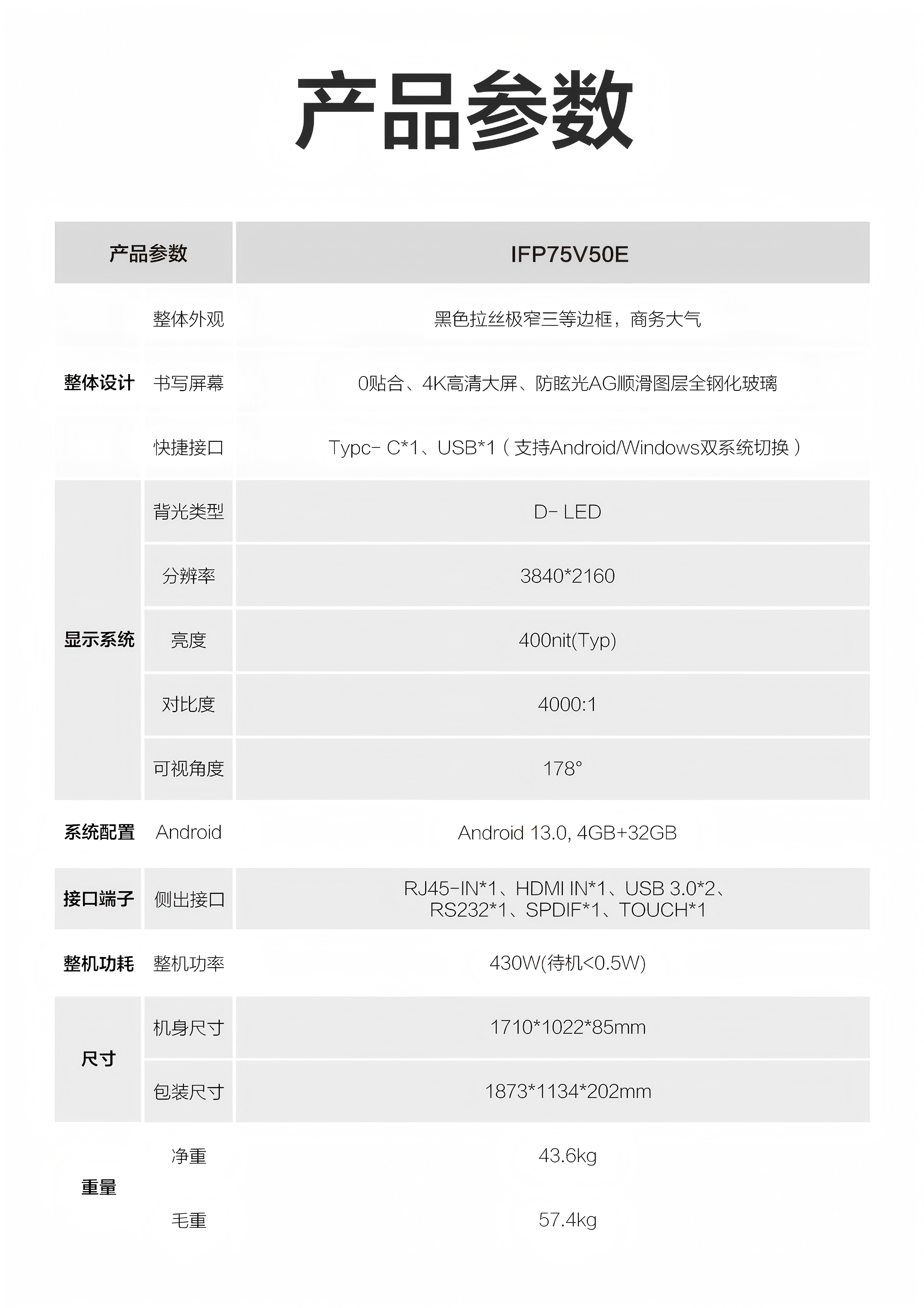 TCL会议平板一体机 75寸触控电视白板无线传屏投影教学培训智能电视商用办公IFP75V50E(含壁挂架)