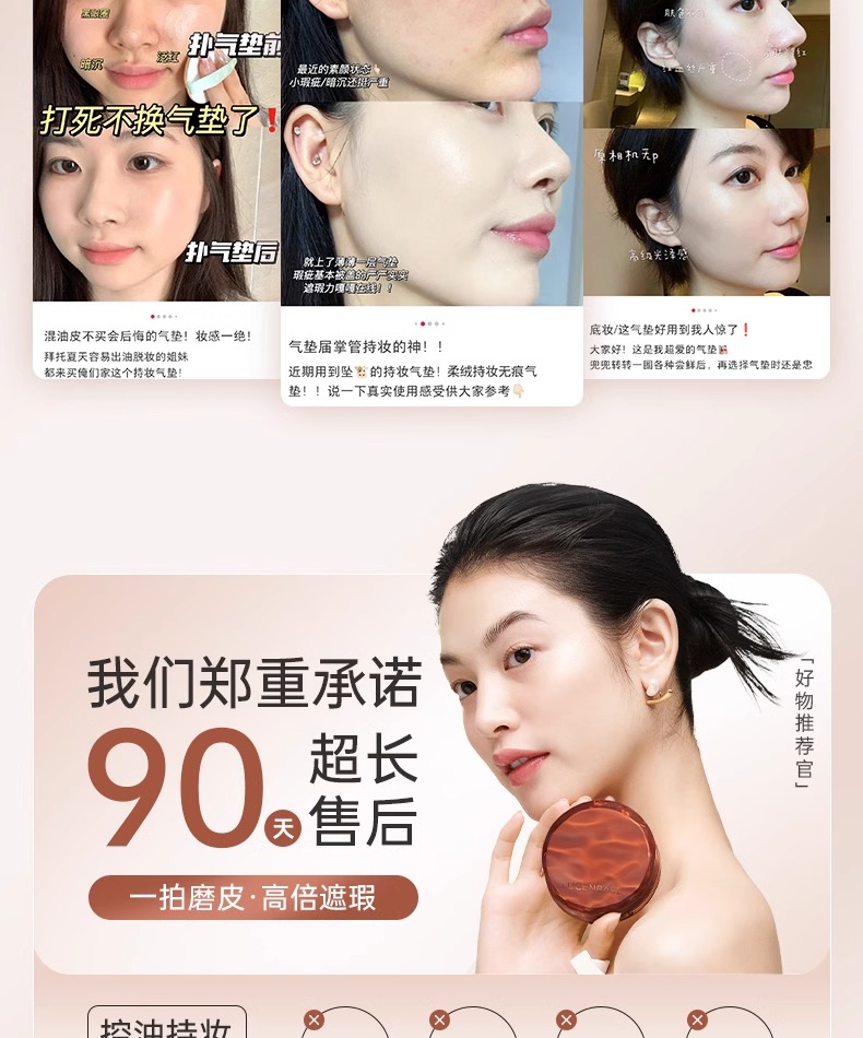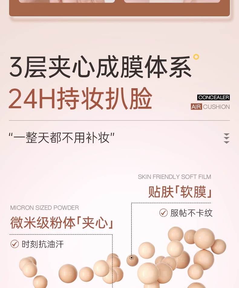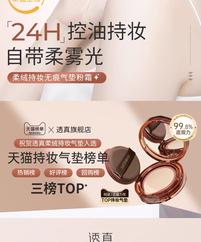 【控油遮瑕 整日持妆】柔绒持妆无痕气垫粉霜15g#气垫bb霜油皮控油遮瑕保湿持久不脱妆养肤粉底液正品官方女旗舰店