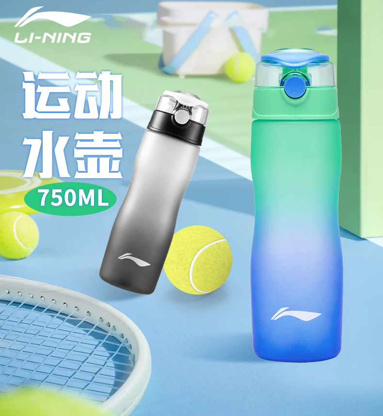李宁运动水杯学生大容量便携羽毛球户外运动带壶嘴时尚运动水壶AQTU355