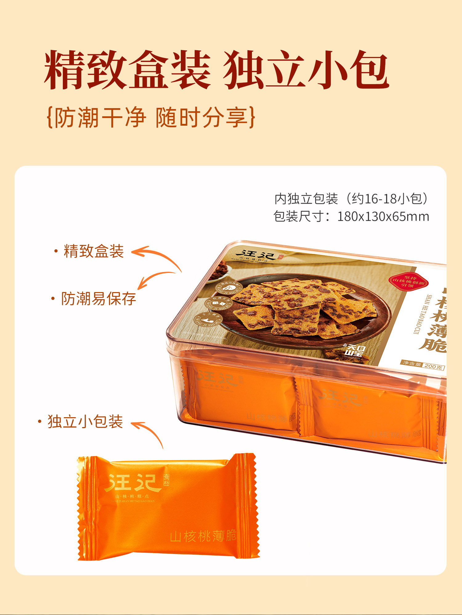 【山核桃薄脆】汪记食朴薄脆 饼干独立小包装净重200g