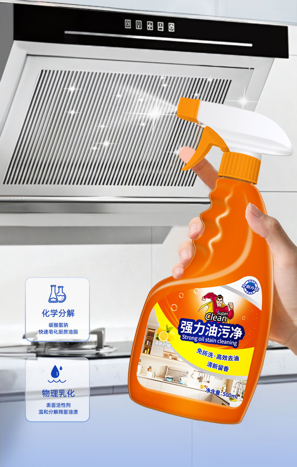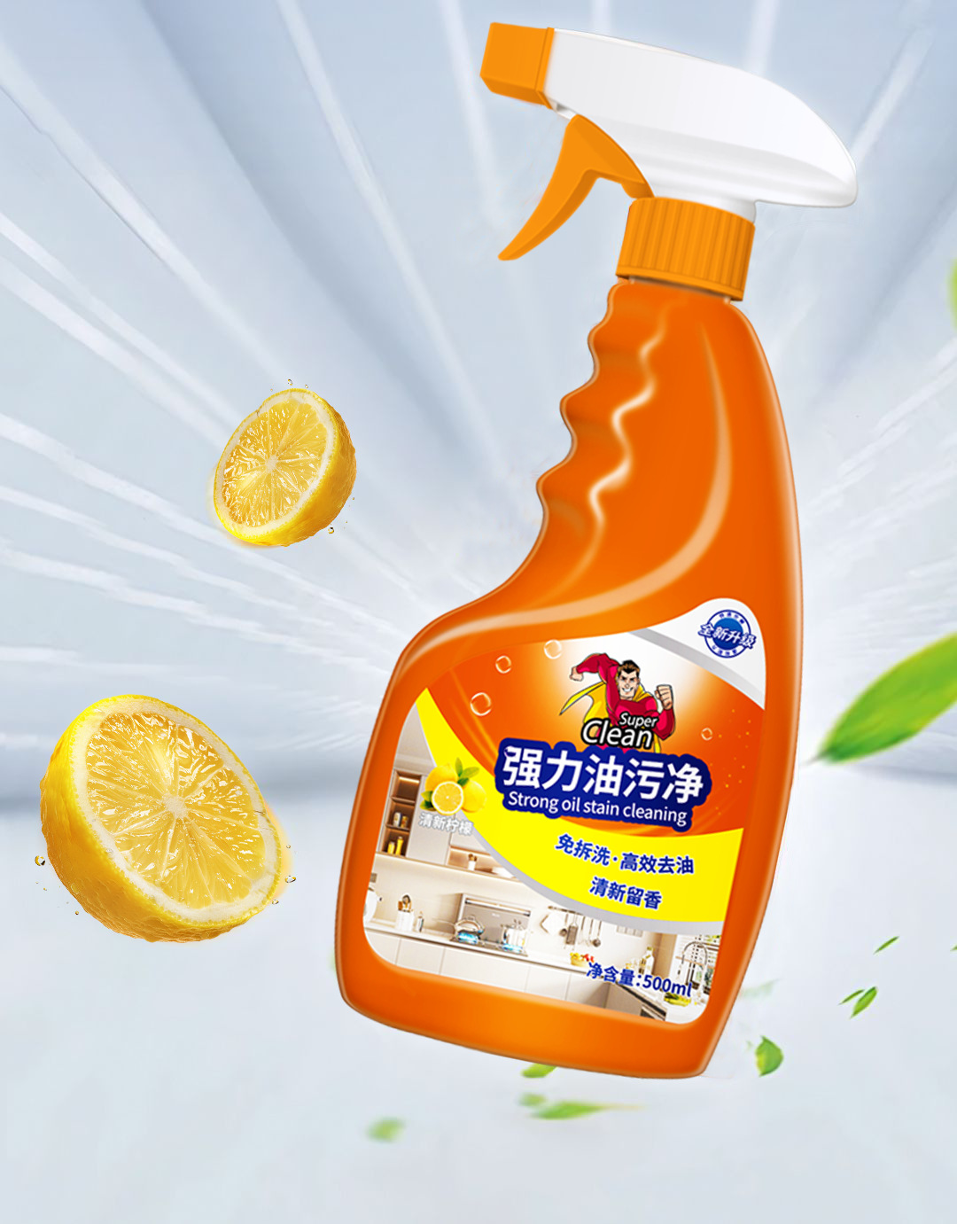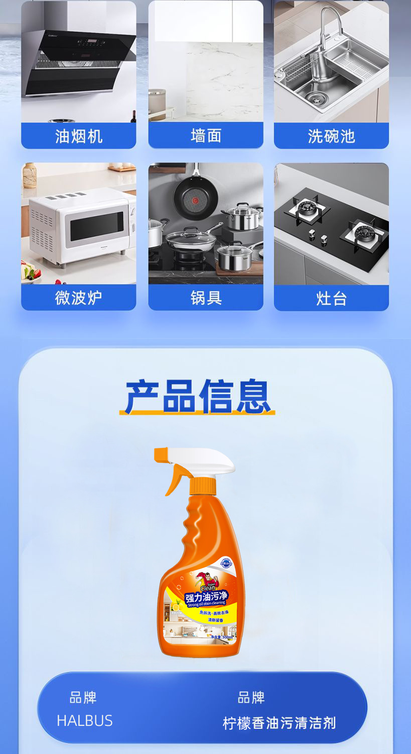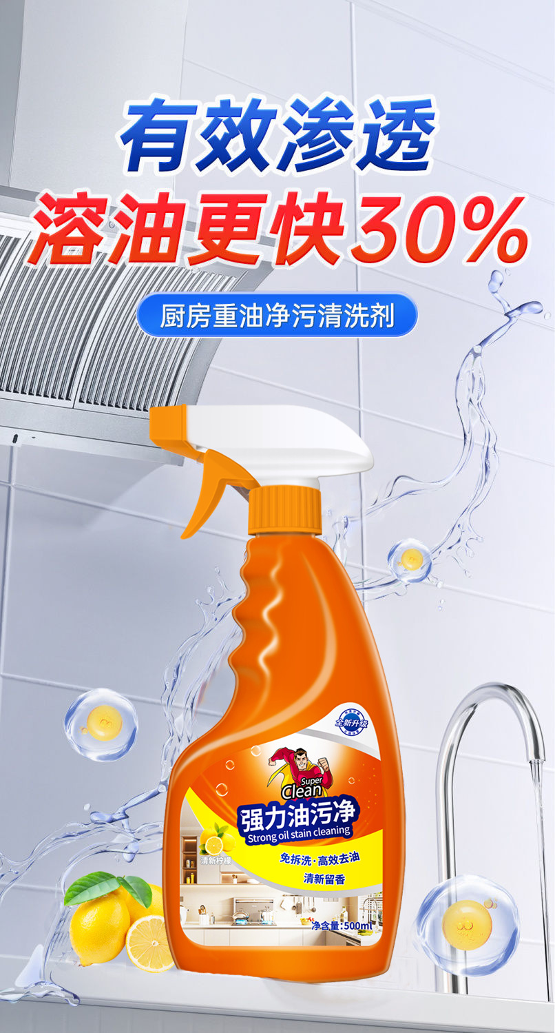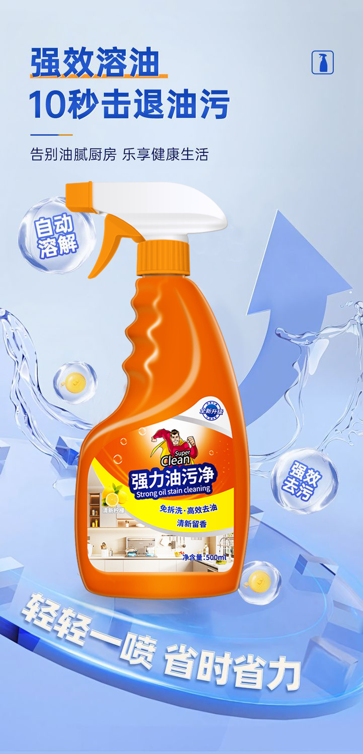 【过年大扫除必备~】强力油污清洁剂*3瓶 多场景通用 轻松除垢 不伤家具 橙味清香 500ml/瓶