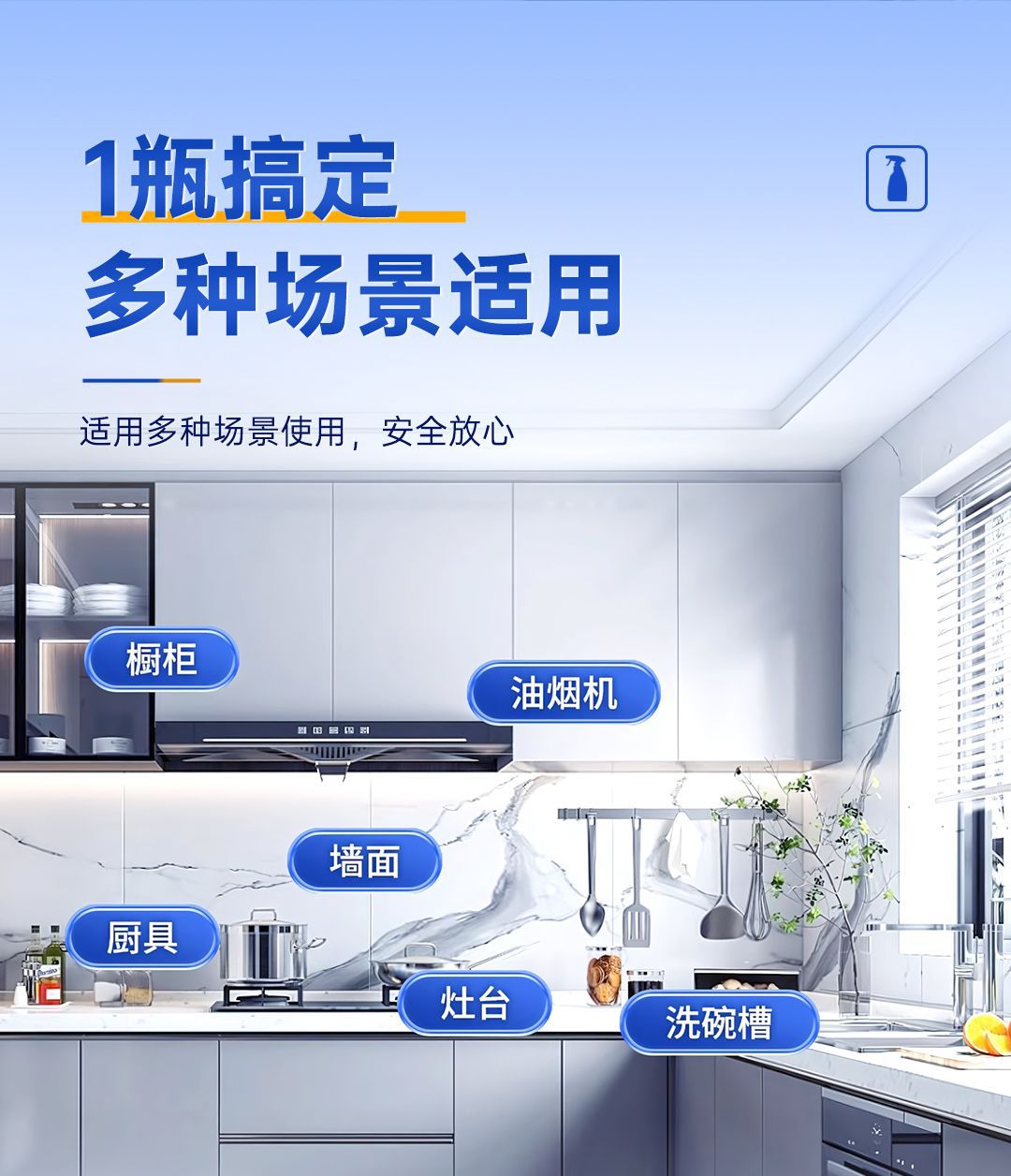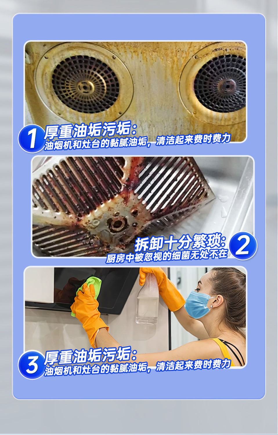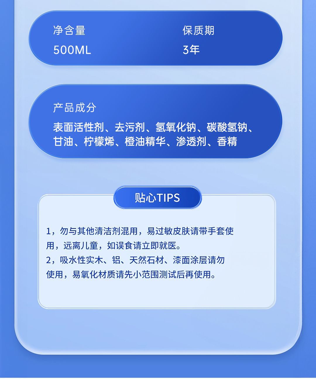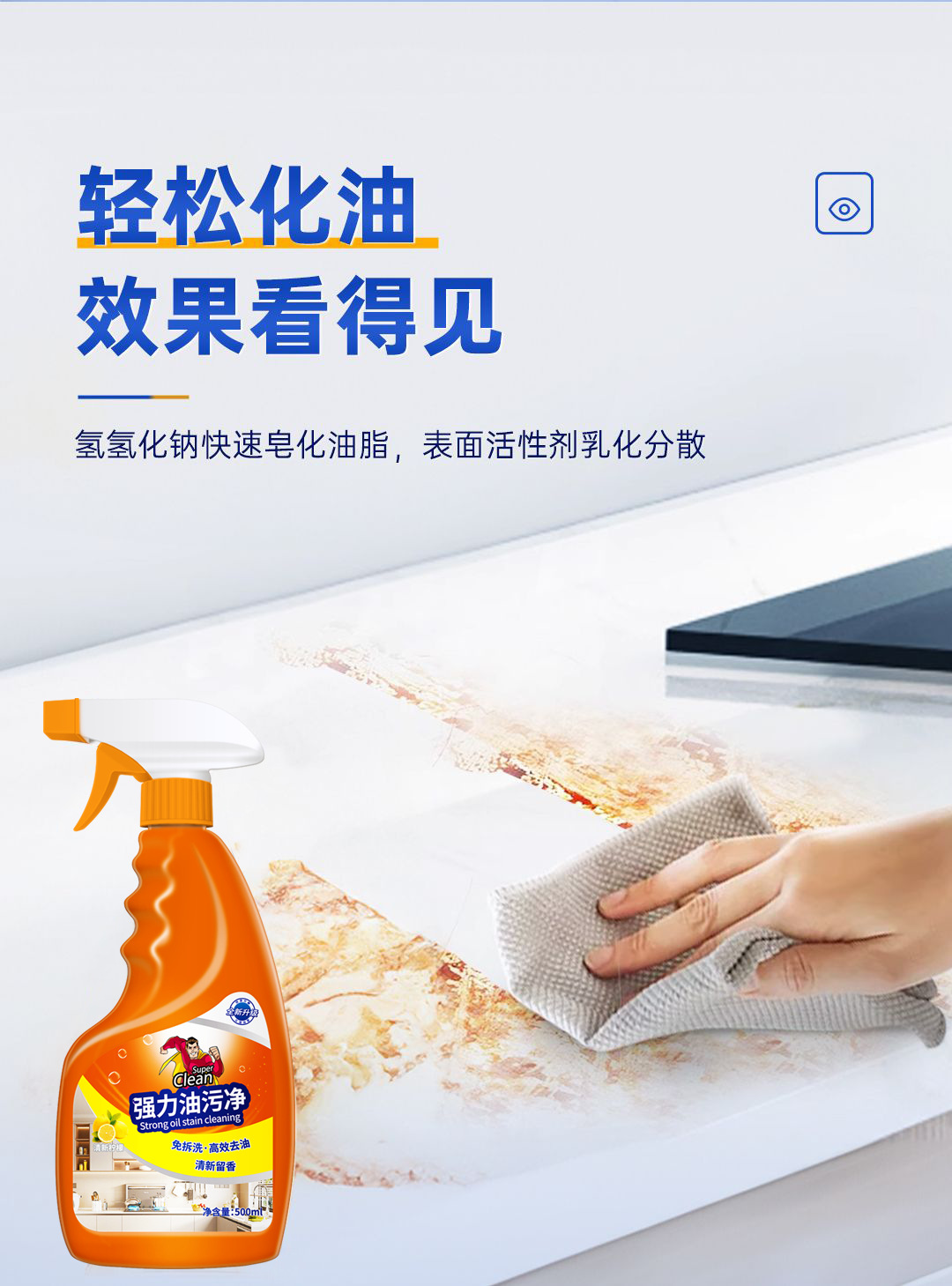 【过年大扫除必备~】强力油污清洁剂*3瓶 多场景通用 轻松除垢 不伤家具 橙味清香 500ml/瓶