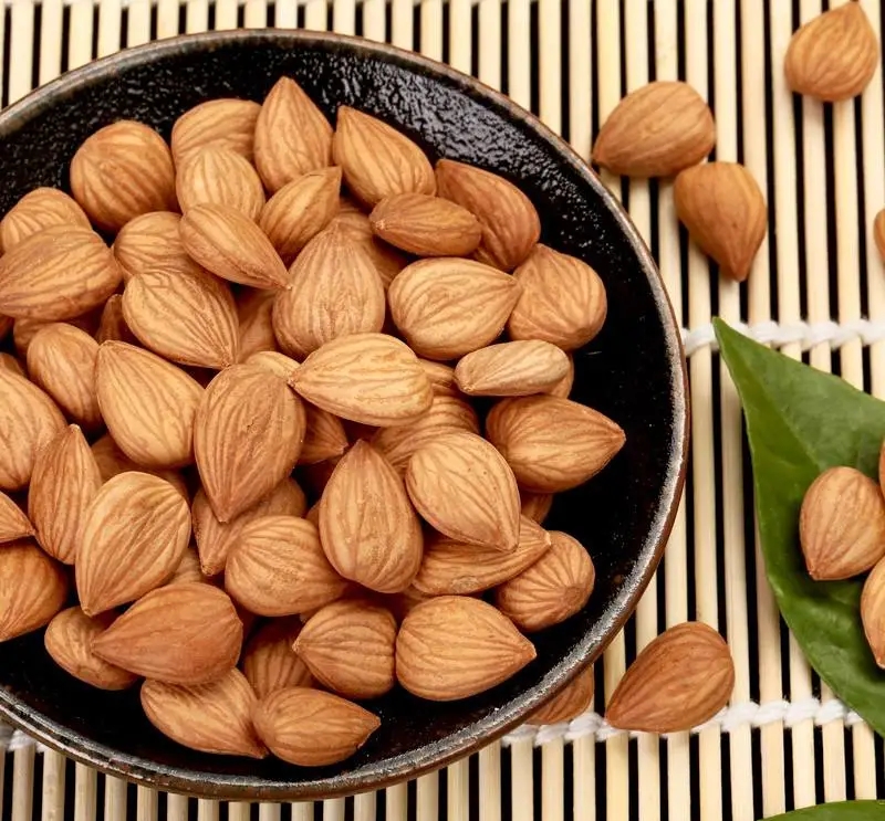 夏季将仁用杏的杏肉剥掉,把里面的甜杏核晒干,翻动起来沙沙的响,就表明干燥到可以装袋收起来了。到了冬天,围着火炉用小锤子砸开杏核,在火上烤一烤,嚼起来嘎嘣脆,香甜美味,在口腔和鼻腔弥漫。除了这些,人们还会加工杏仁油,杏仁茶,杏仁稀粥吃。10月份,灵丘基地的伴姨用村里的石磨将苦杏仁碾成面团状,通过热水挤出杏仁油,用剩下的杏仁粉煮了香喷喷的杏仁稀粥,有些灵丘的同事感慨快二十多年没喝过了,连干了三大碗。