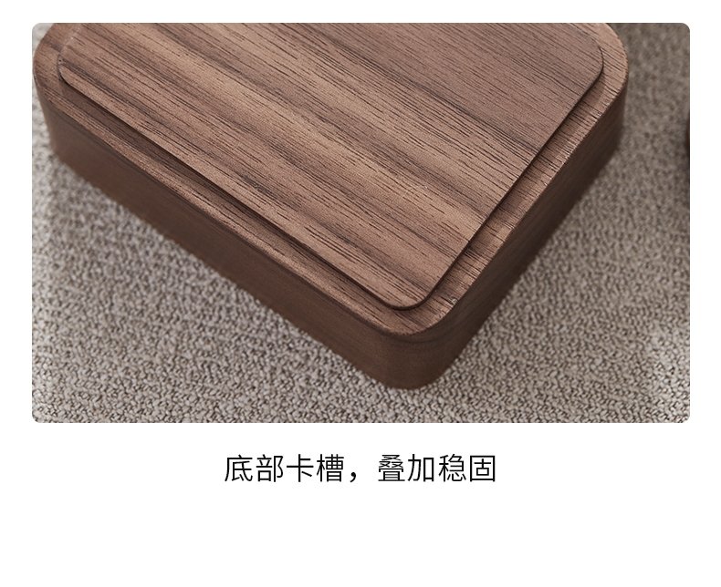 初心| 实木茶杯垫套装6个+收纳架黑胡桃木