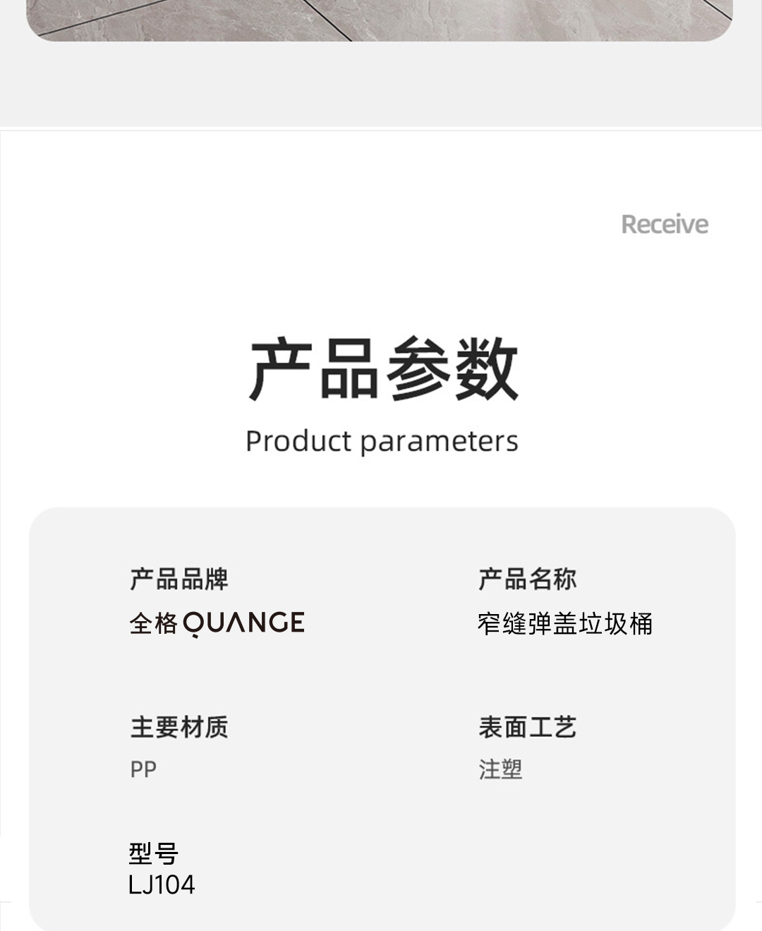 全格窄缝弹盖垃圾桶