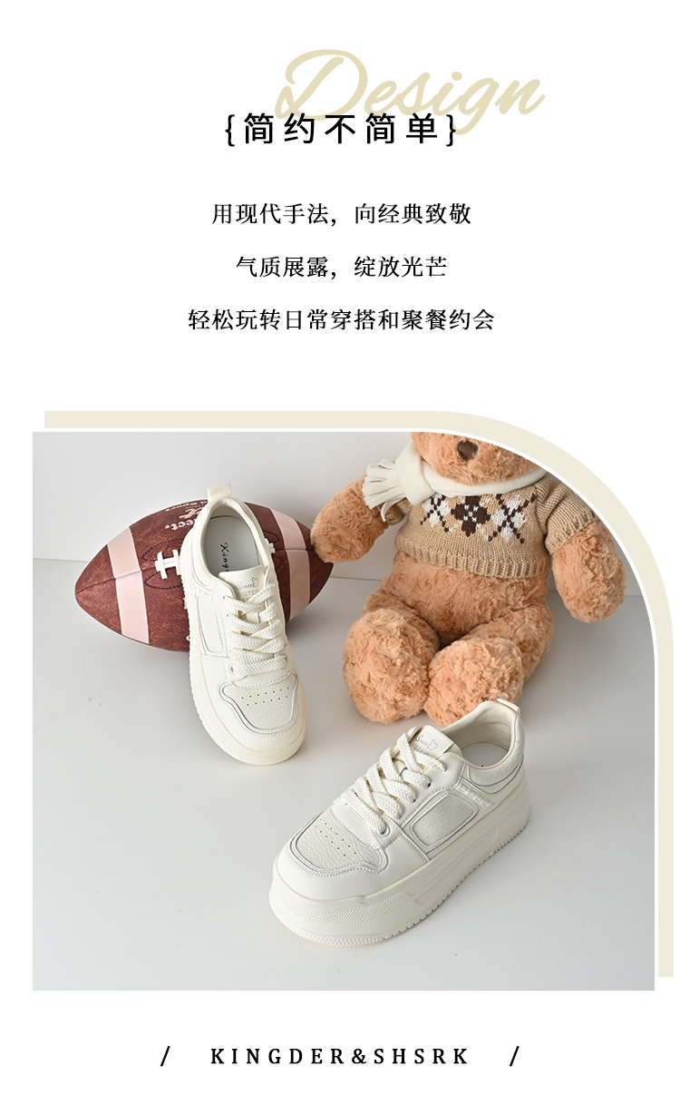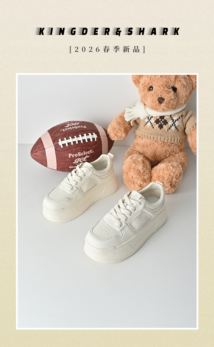 经典鲨2026年春专柜新品韩版百搭圆头厚底系带休闲小白鞋女KW194-617031