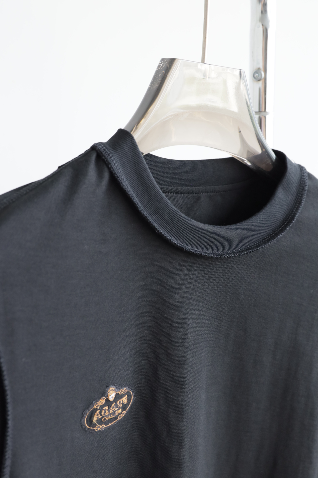 领口同缸螺纹,不易变形。常规合身版型,净色黑色