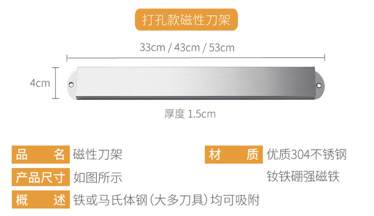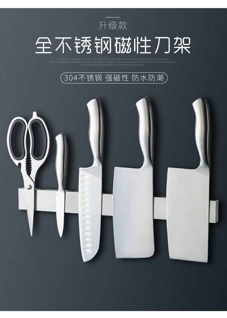 【刀架】磁性刀架304不锈钢磁铁刀架厨房磁性刀座菜壁挂式免打孔吸刀架