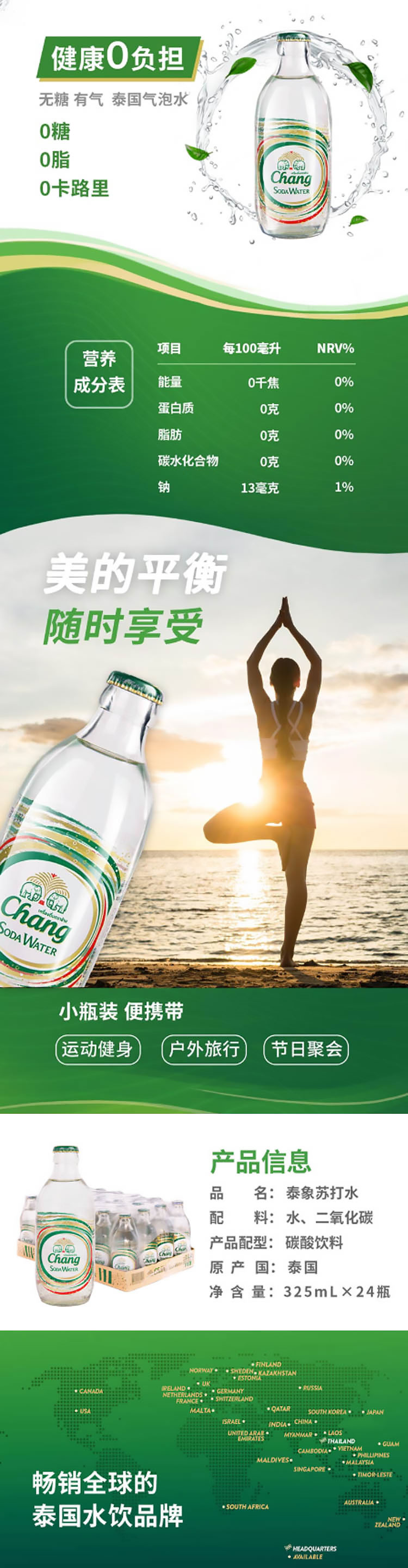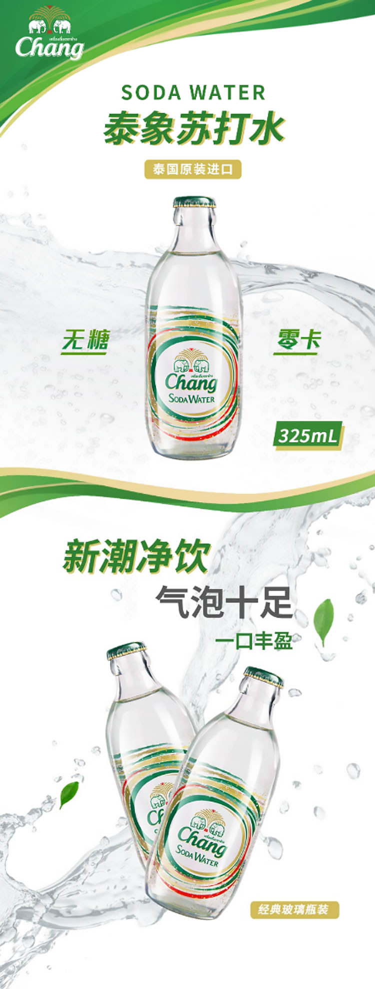 泰国泰象(象牌)无糖弱碱性气泡苏打水 325ml*24瓶