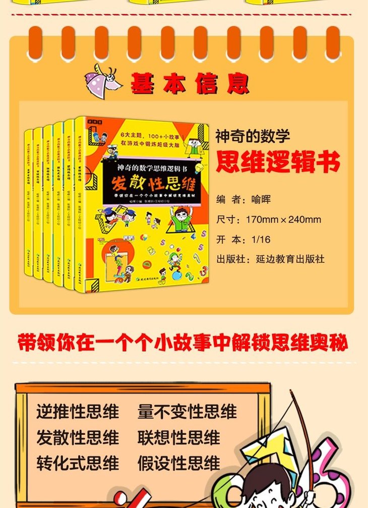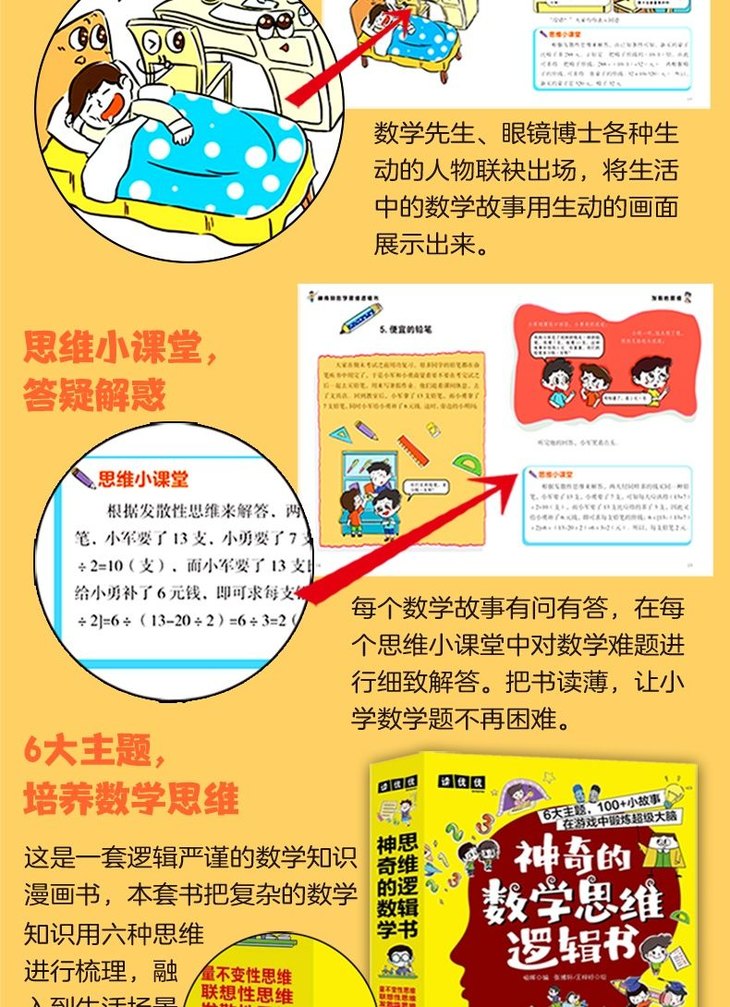 神奇的数学思维逻辑书全6册小学生1-6年级青少年儿童趣味科普启蒙训练书加减法练习册左右全脑开发专注力奥数算数趣味科普漫画读物