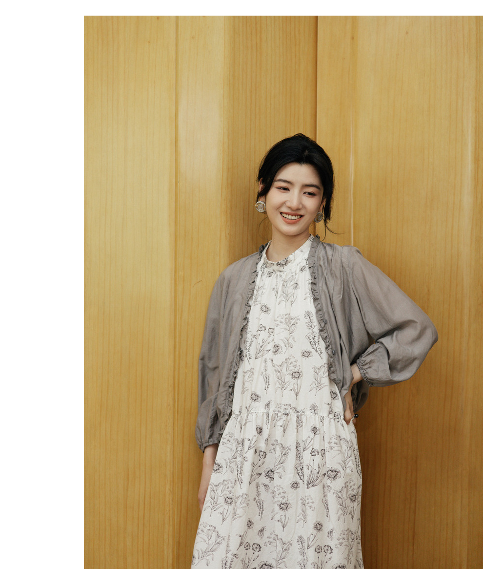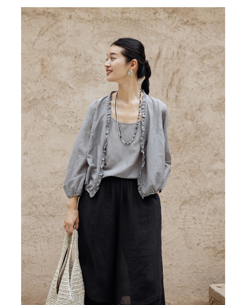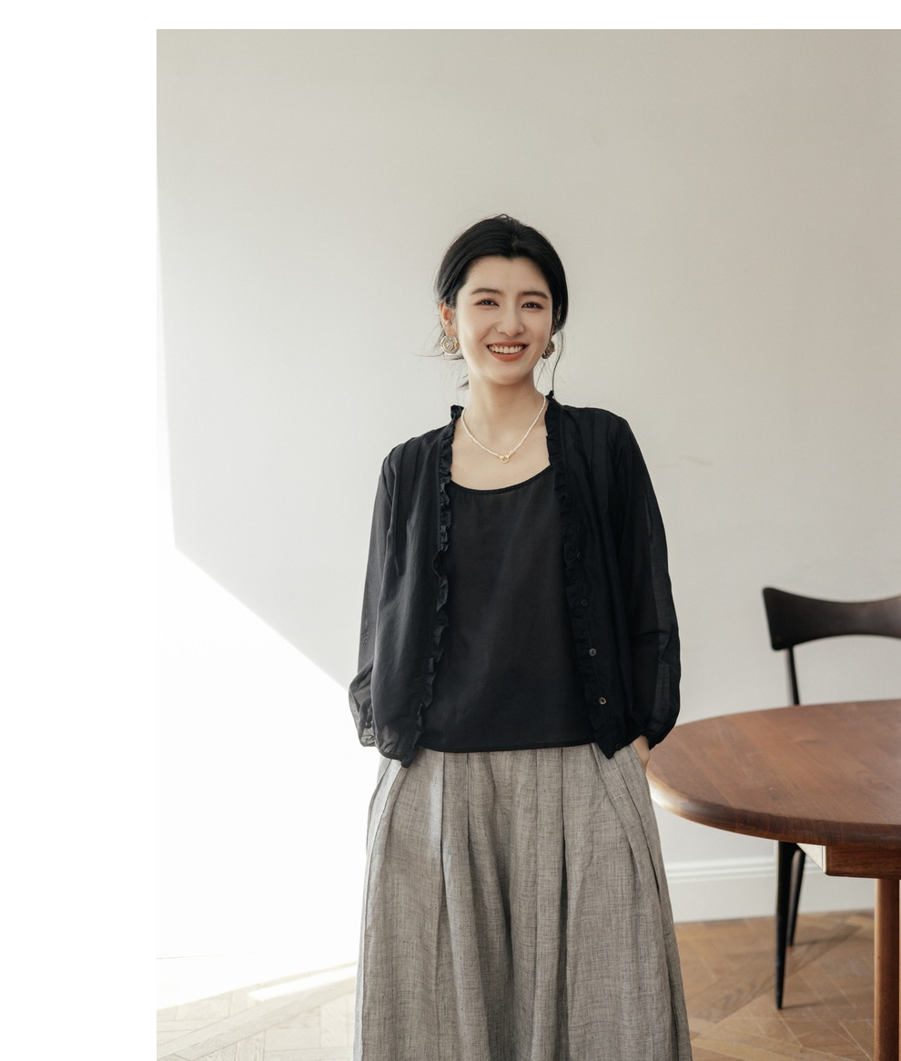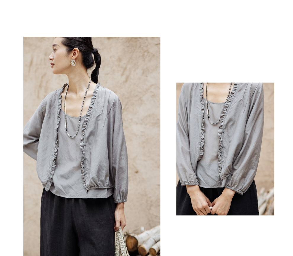 绽放464-385朵【黑白灰系列·木耳】丝绵花边长袖防晒小衫吊带