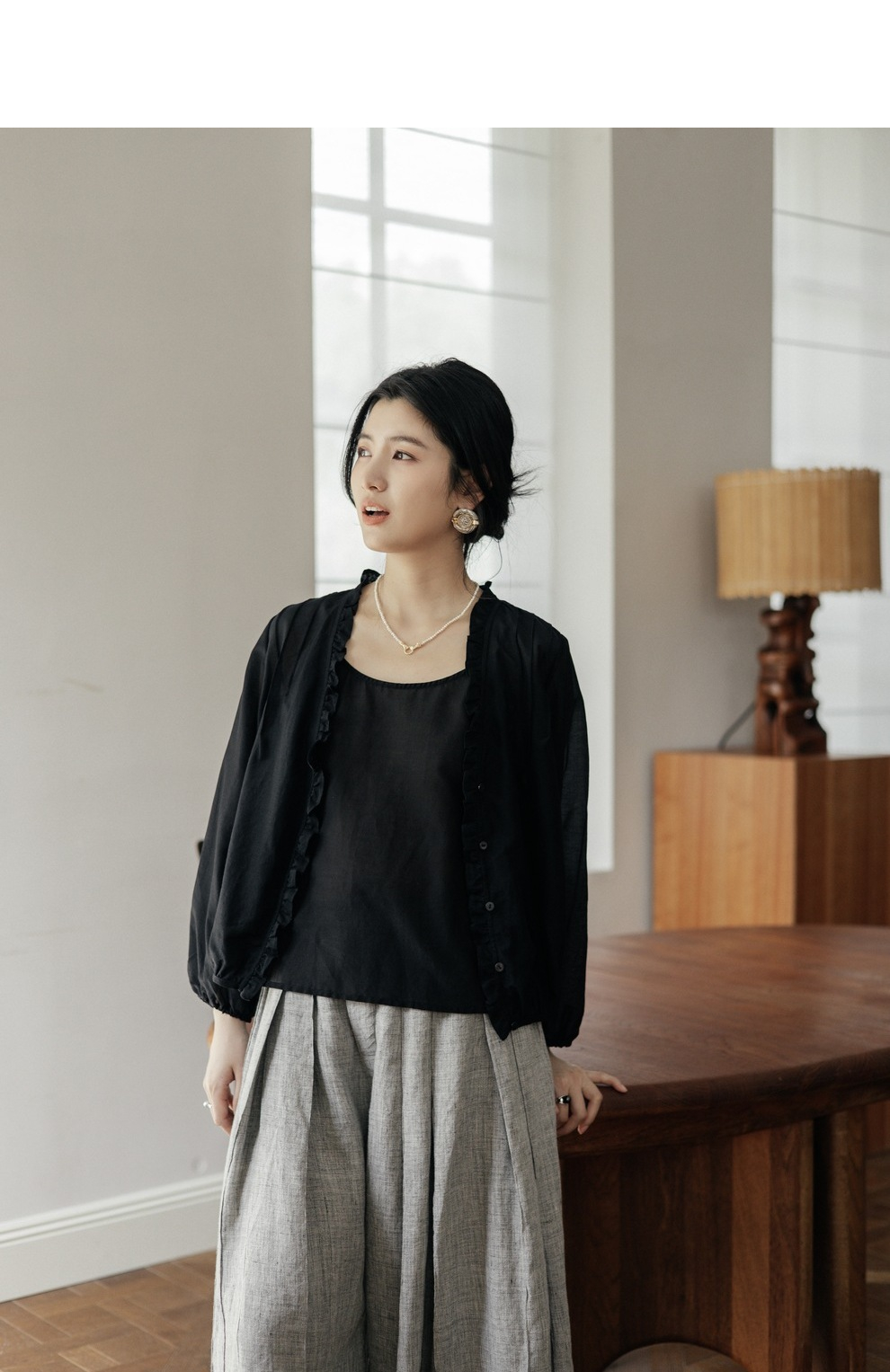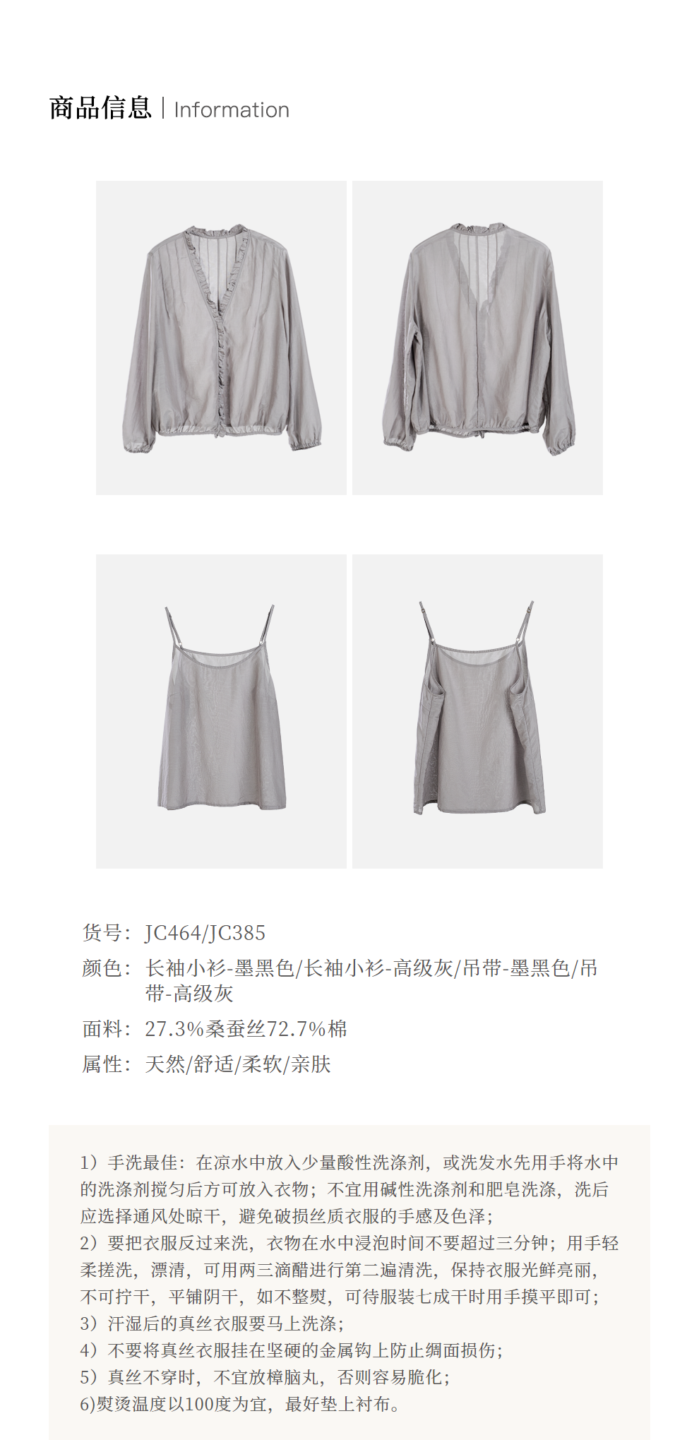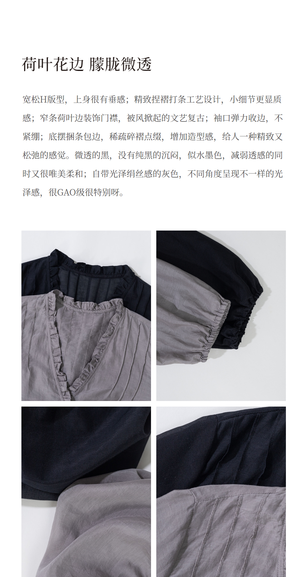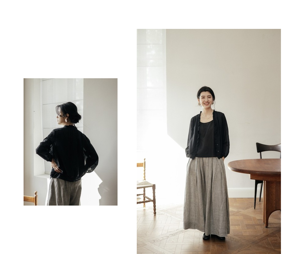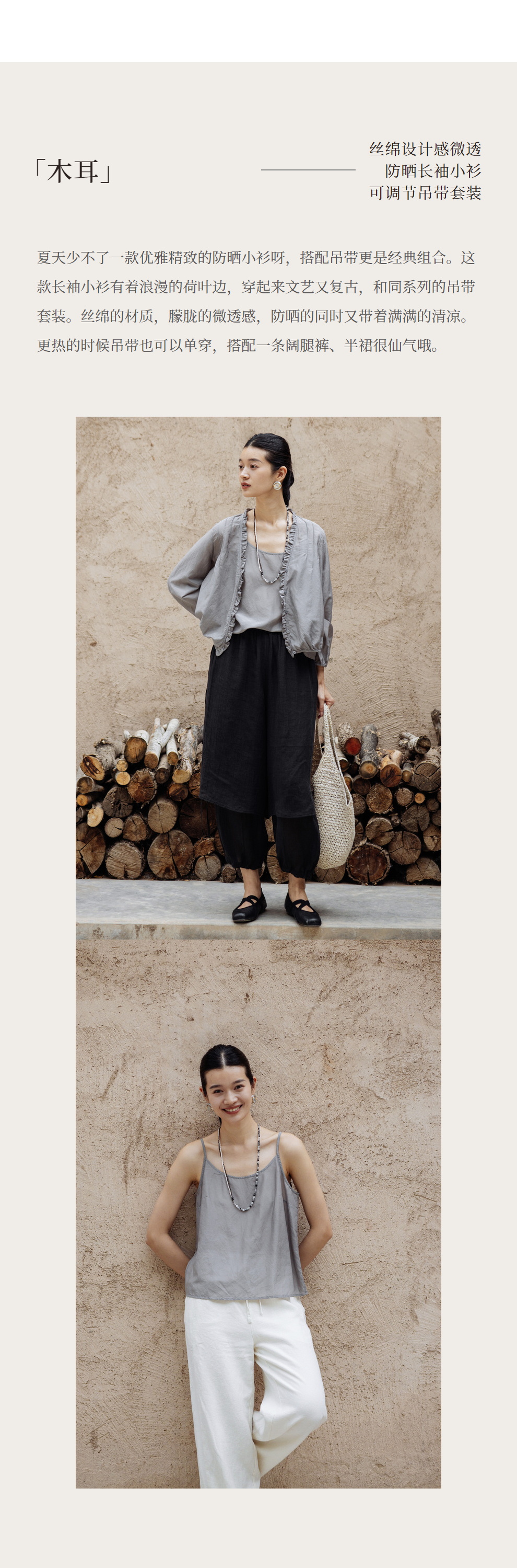 绽放464-385朵【黑白灰系列·木耳】丝绵花边长袖防晒小衫吊带