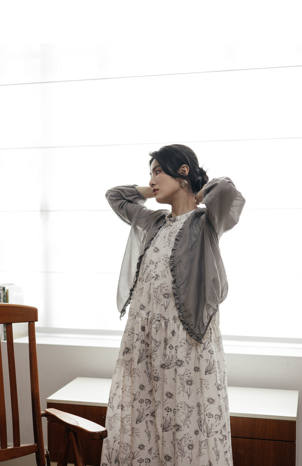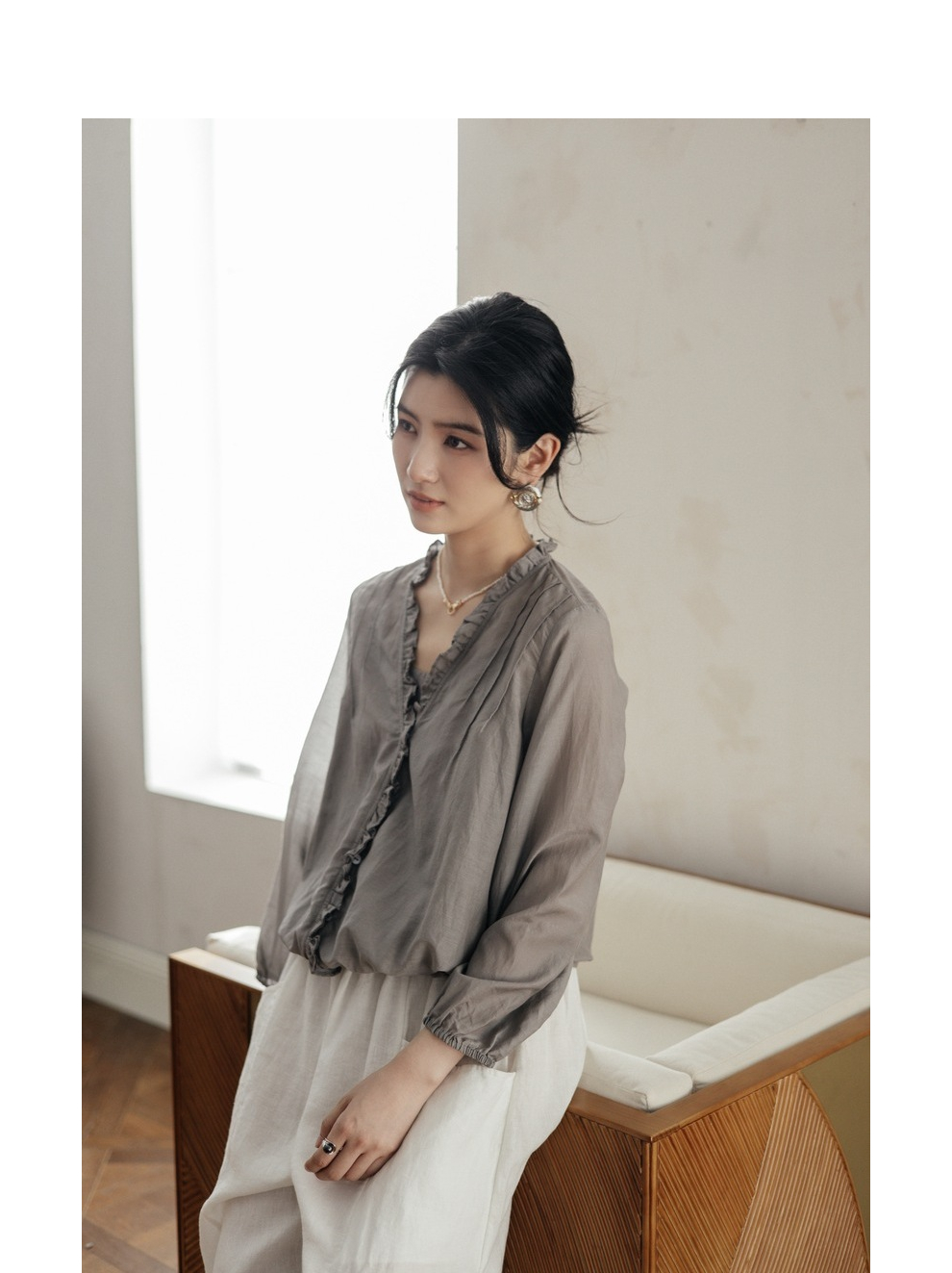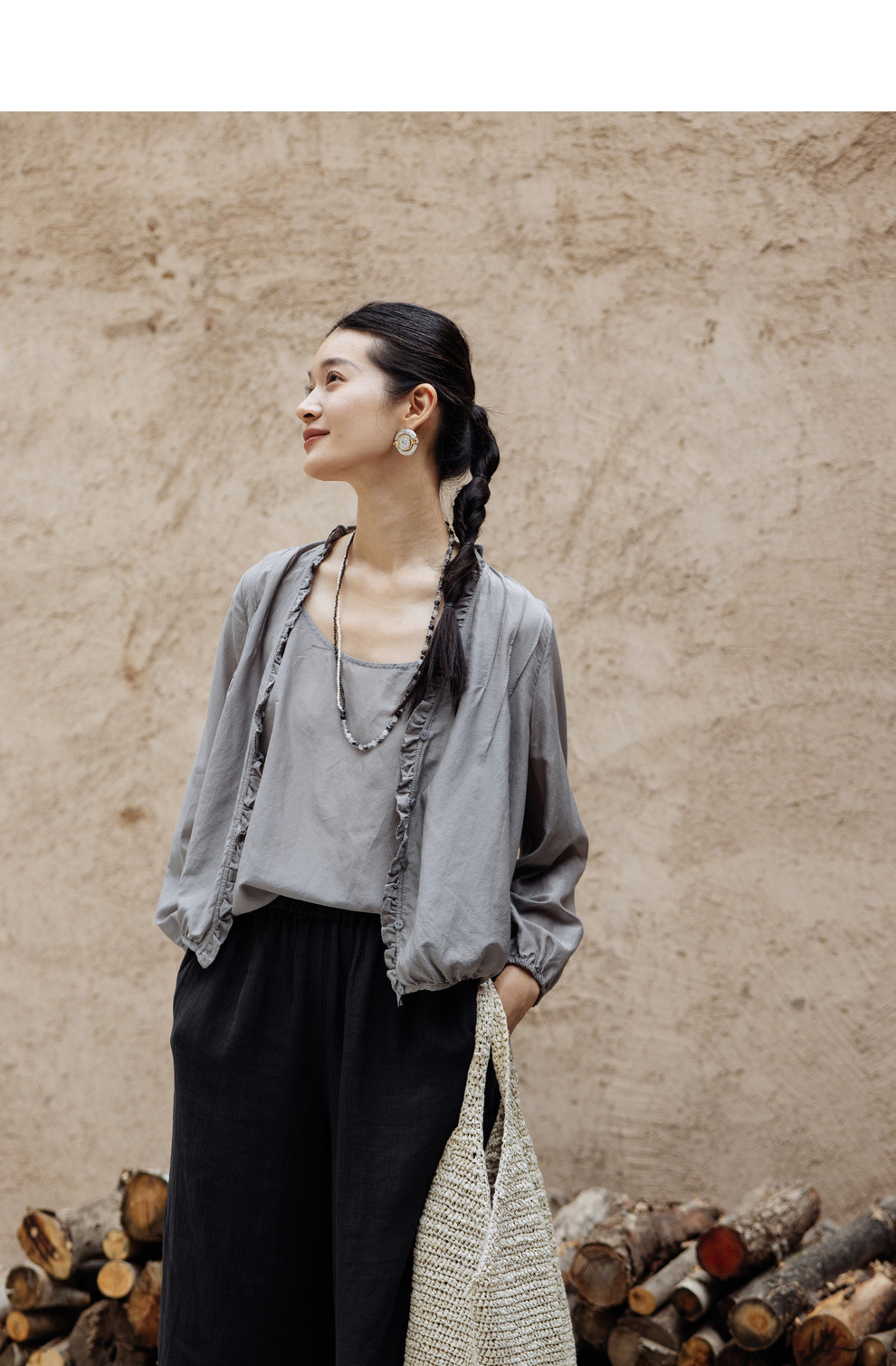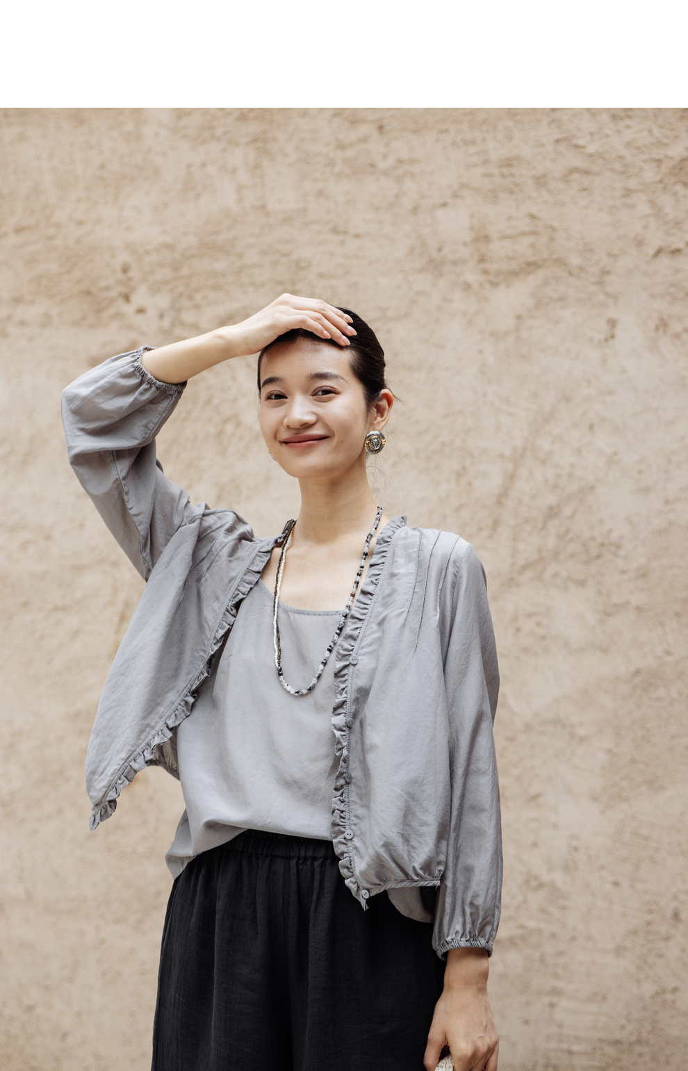 绽放464-385朵【黑白灰系列·木耳】丝绵花边长袖防晒小衫吊带
