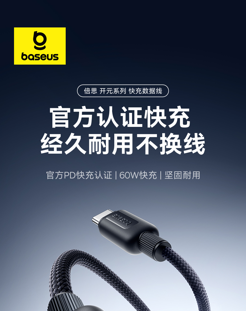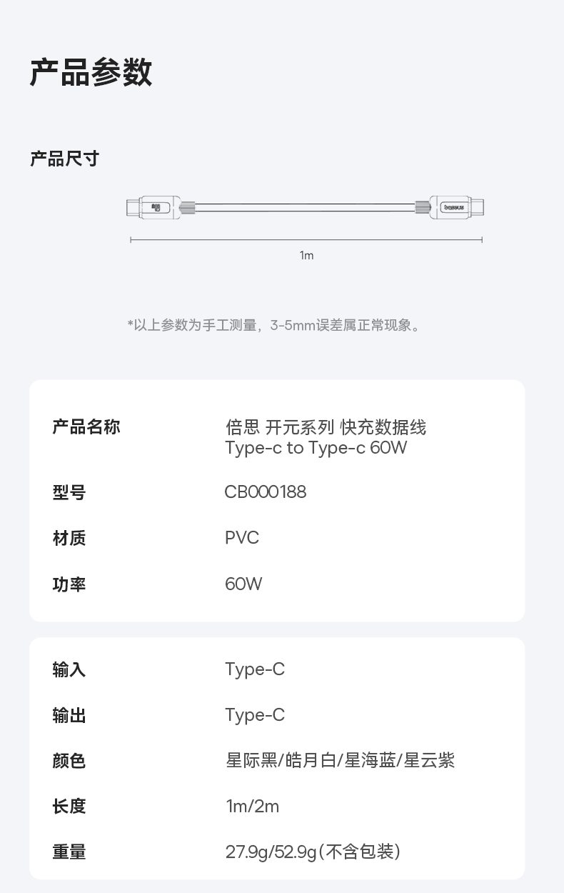 倍思 开元系列 快充数据线 Type-C to Type-C 60W