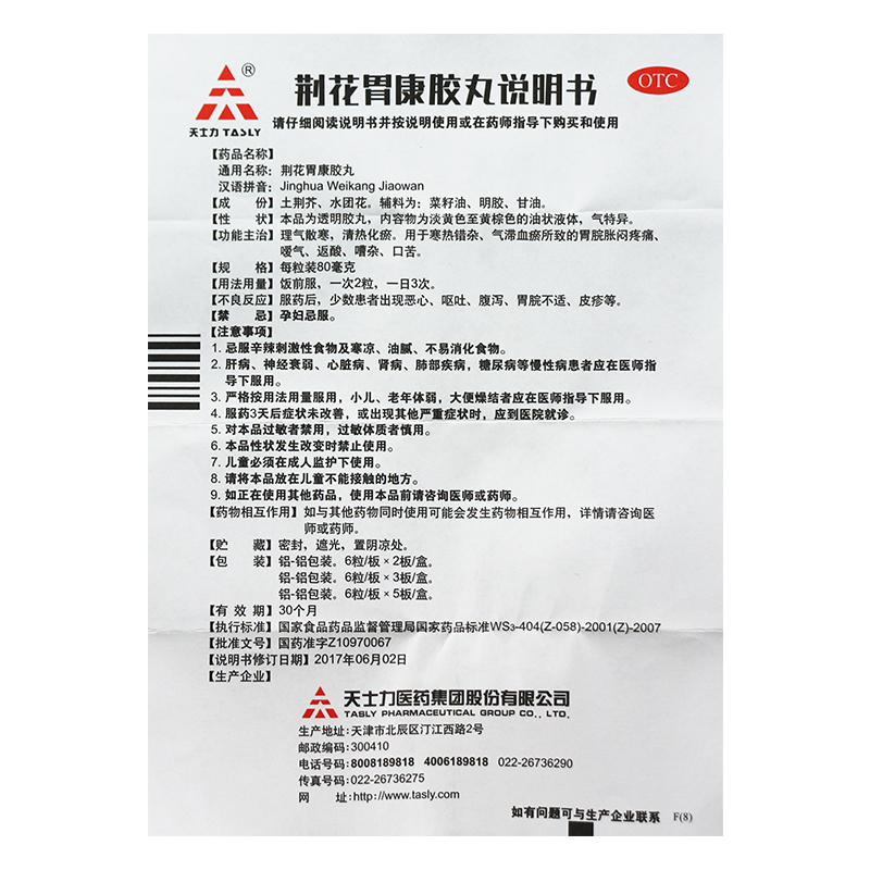 天士力荆花胃康胶丸12粒 理气散寒 清热化瘀 寒热错杂 气滞血瘀