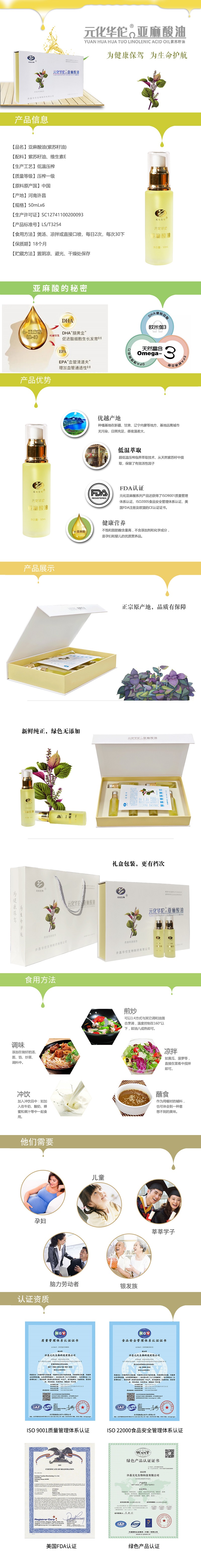 元化华佗亚麻酸油 50ml/瓶x6瓶/盒