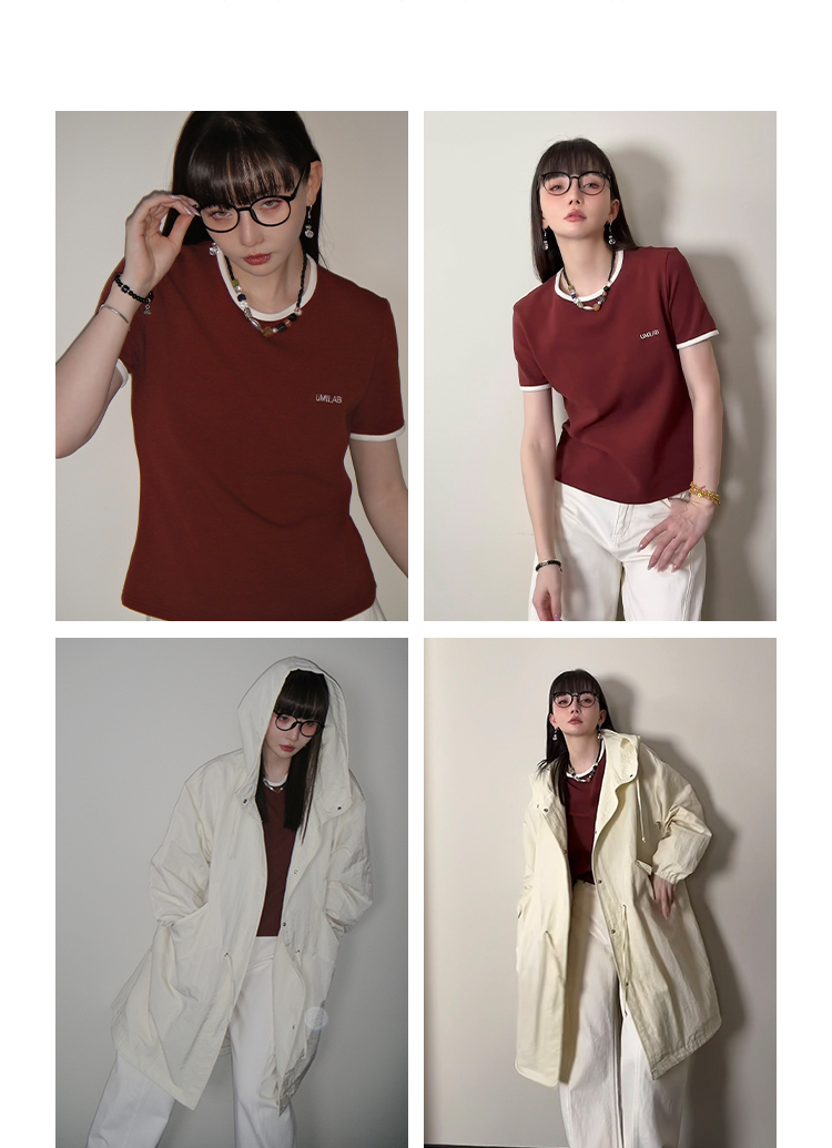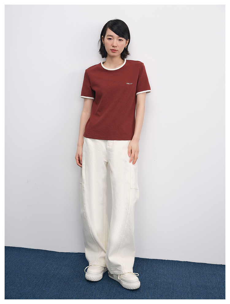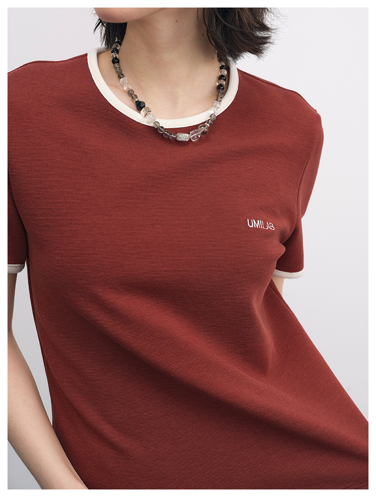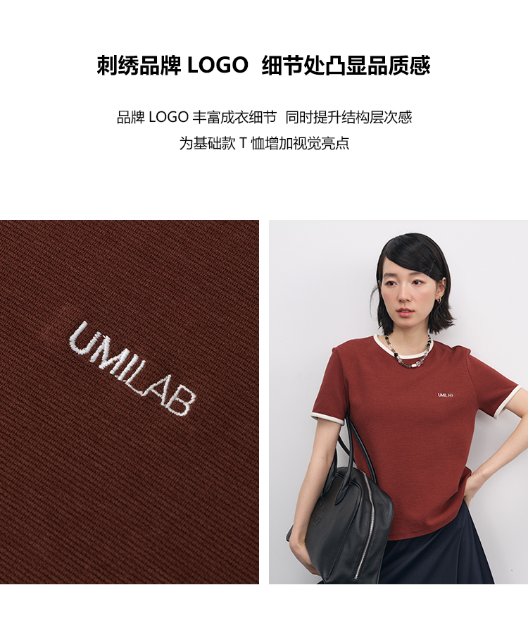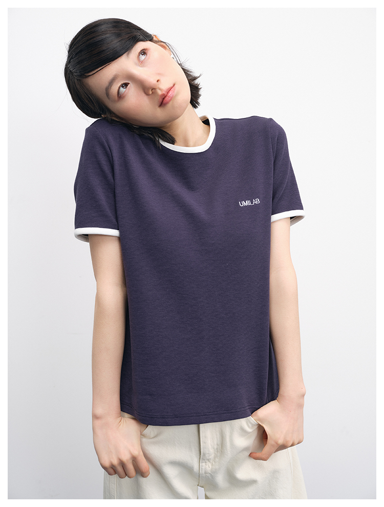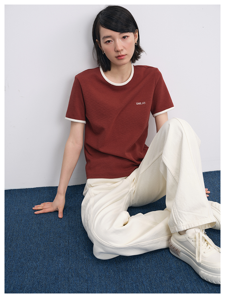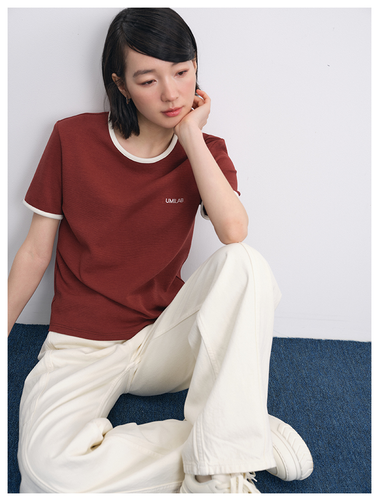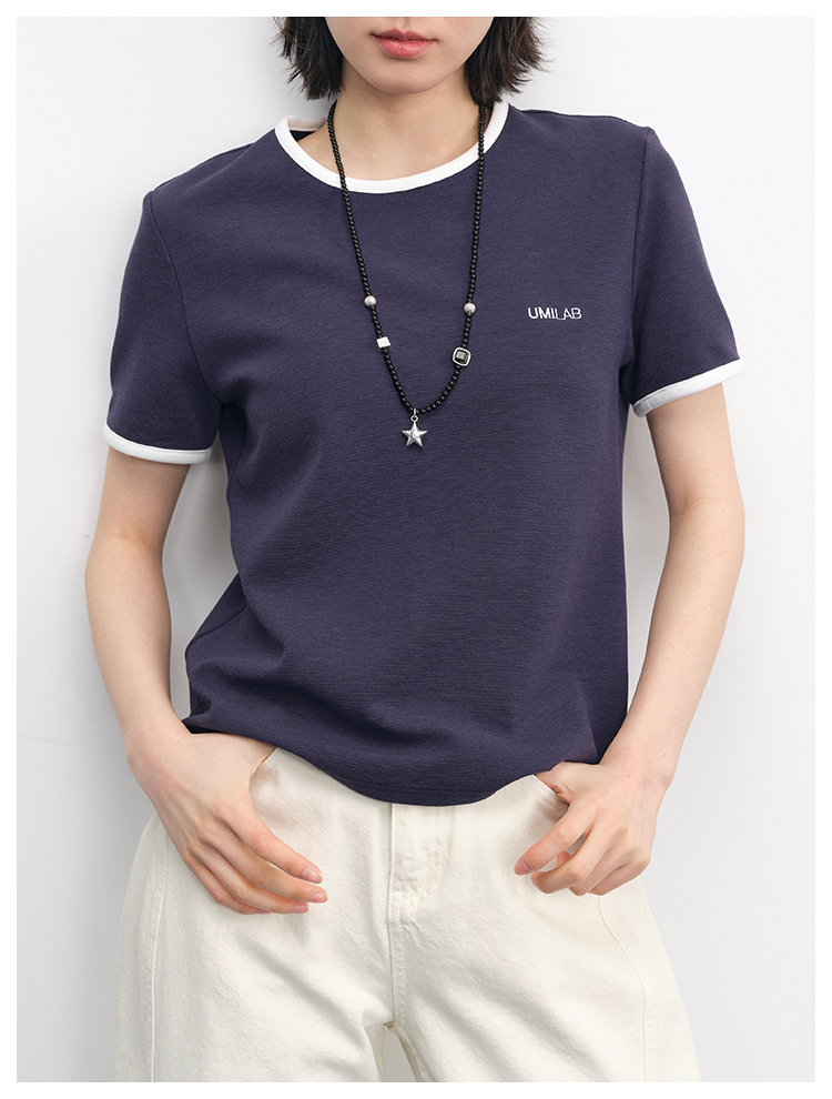 UMILAB【春游】复古miu风 优可丝棉混纺亲肤百搭撞色包边T恤T706H