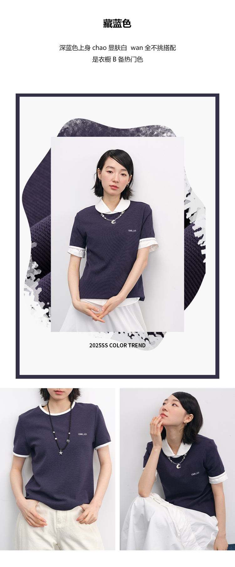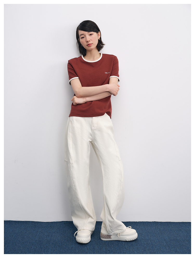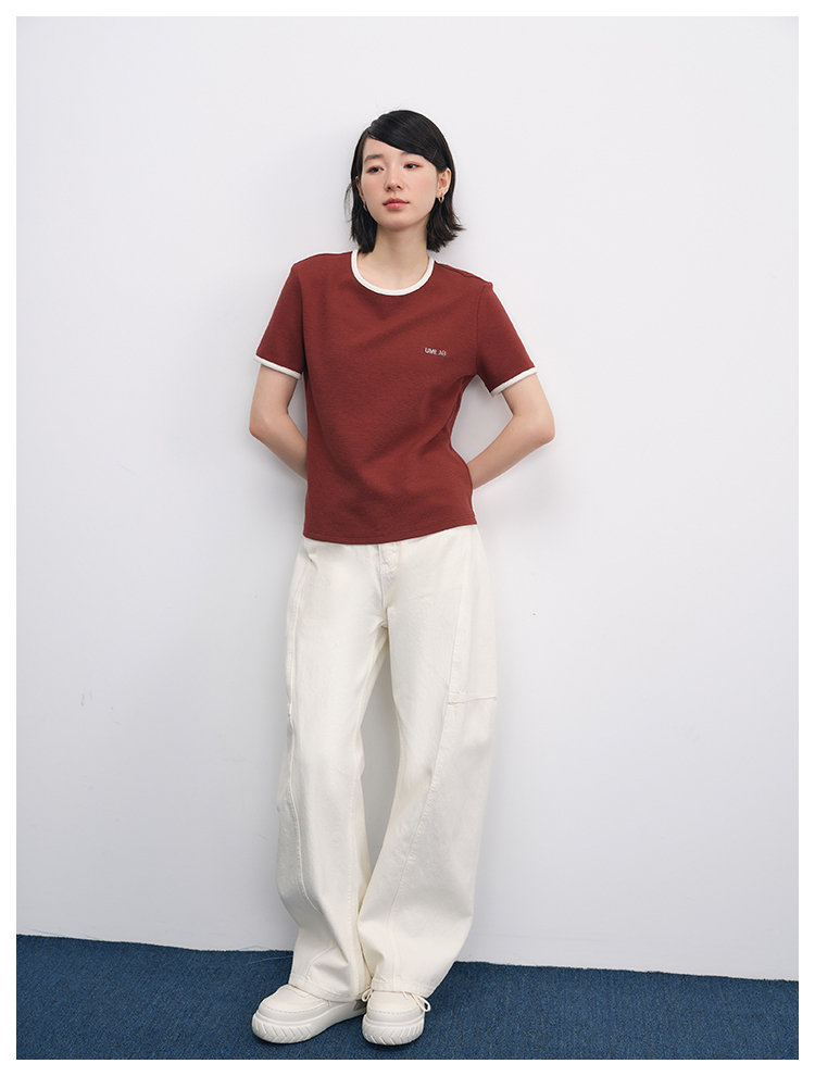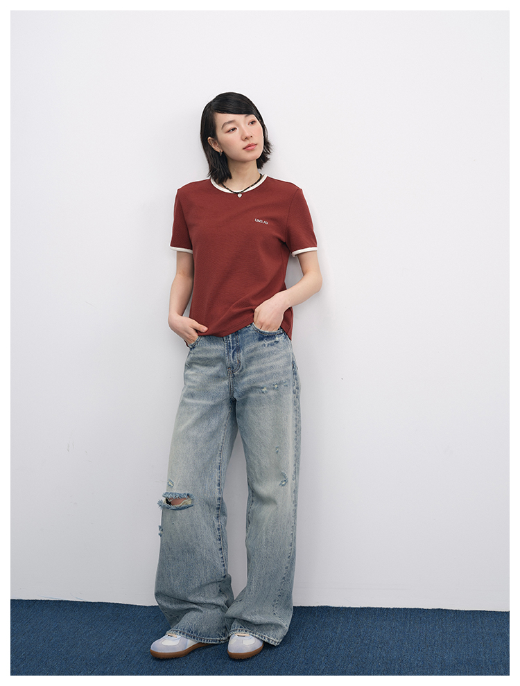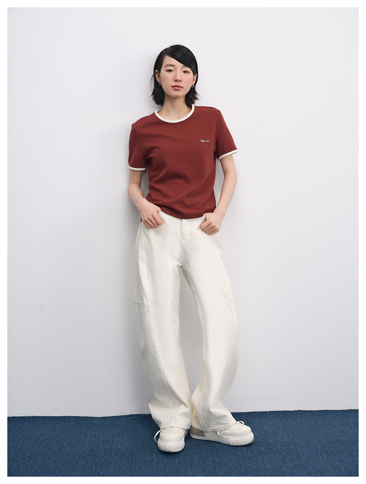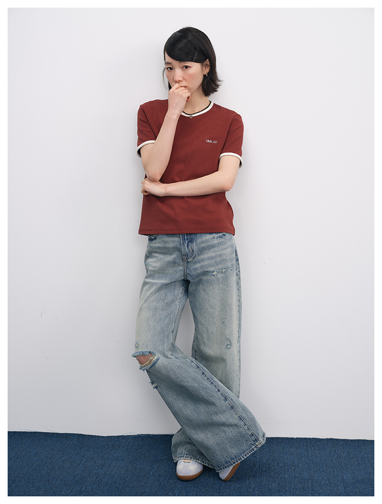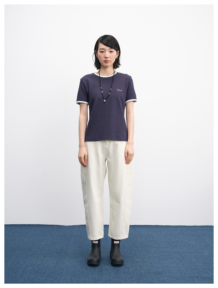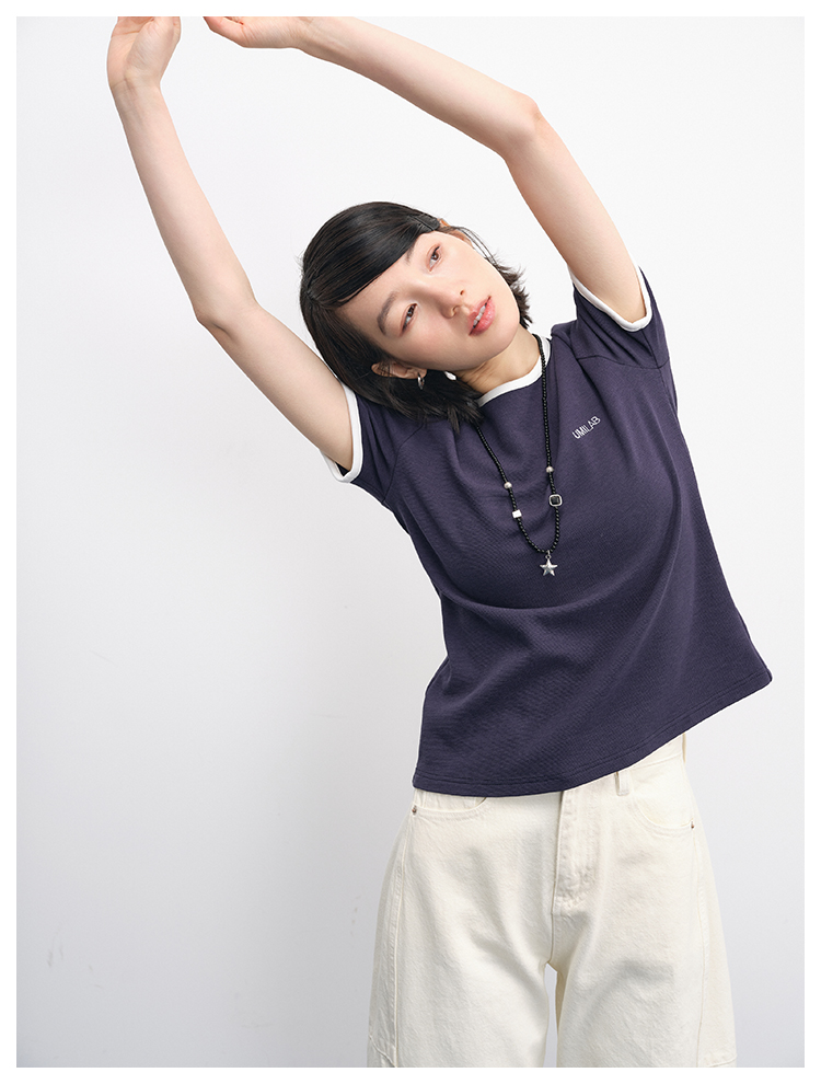 UMILAB【春游】复古miu风 优可丝棉混纺亲肤百搭撞色包边T恤T706H